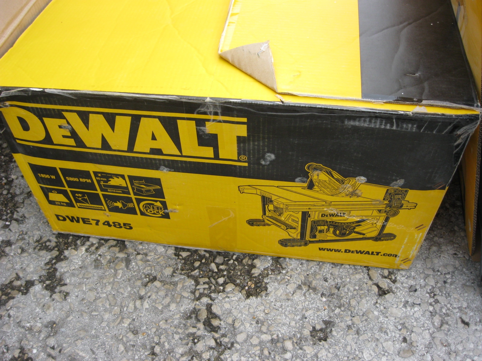 A DeWalt DWE7485 Table Saw, boxed and apparently unused, plus a DeWalt DE7450 Stand for the same, also boxed and apparently unused, the pair in excellent condition