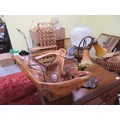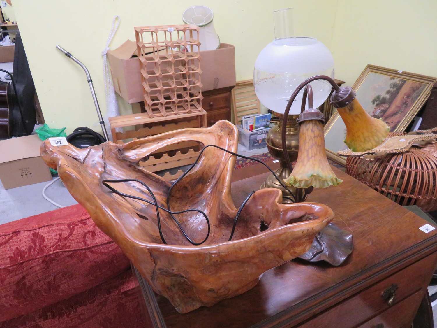 Oil lamp, Art Nouveau style lamp and a large wooden carving