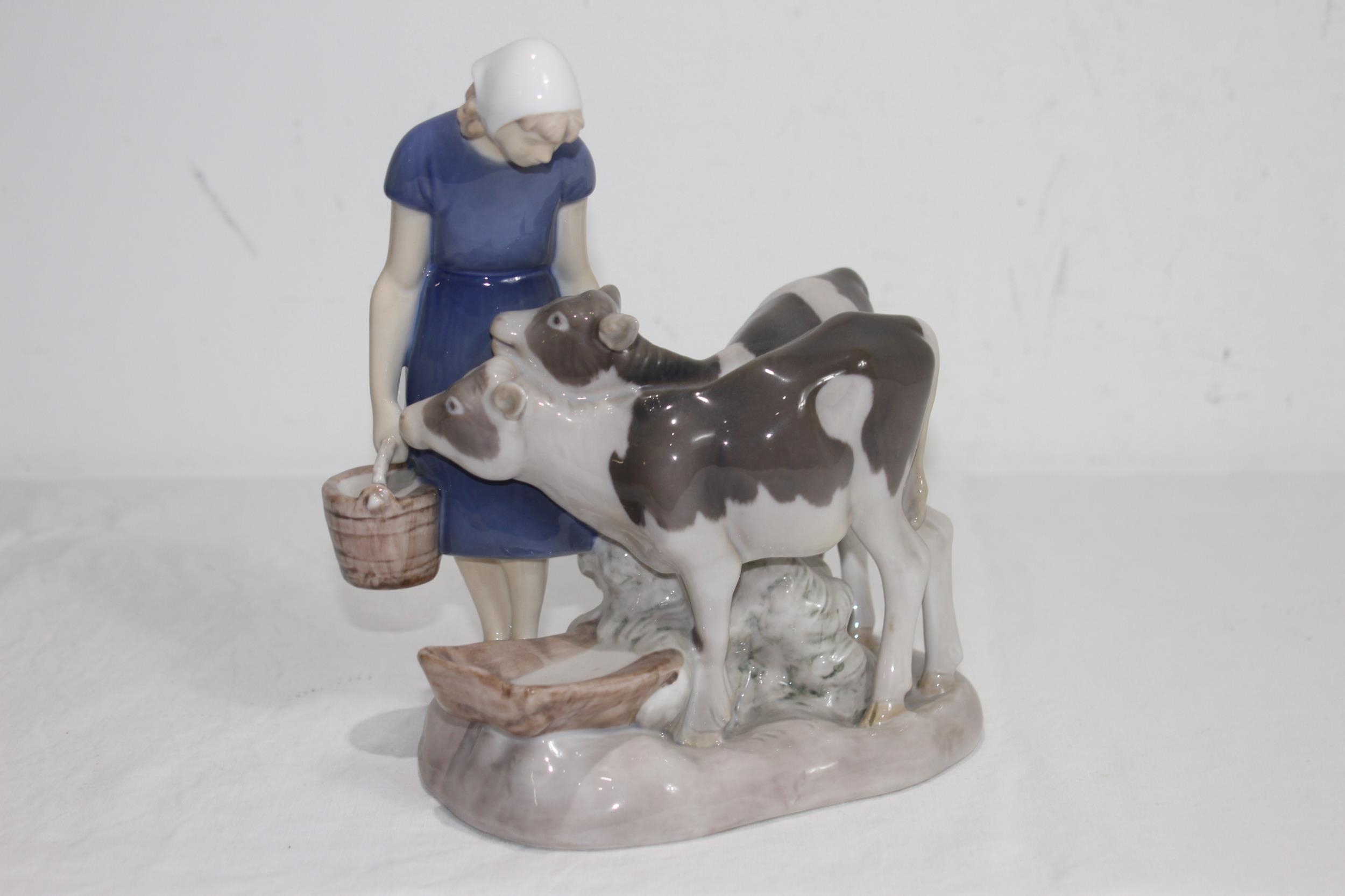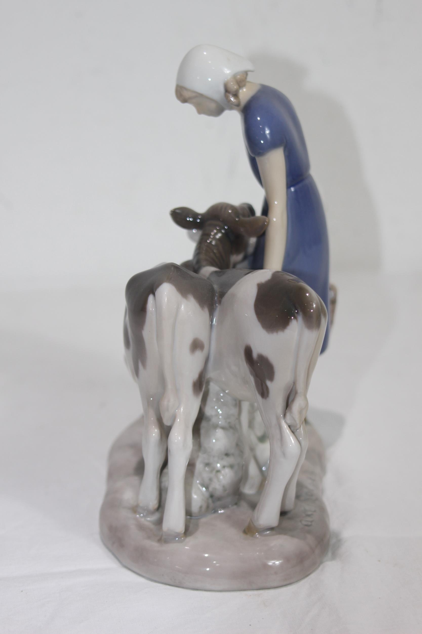B & G MADE IN DENMARK 2270 GIRL AND CALFS AXEL LOCHER FIGURINE 21 X 18CM