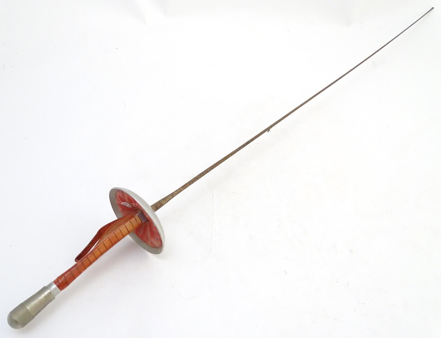 A Leon Paul fencing foil with a leather bound handle. Blade approx. 35" long