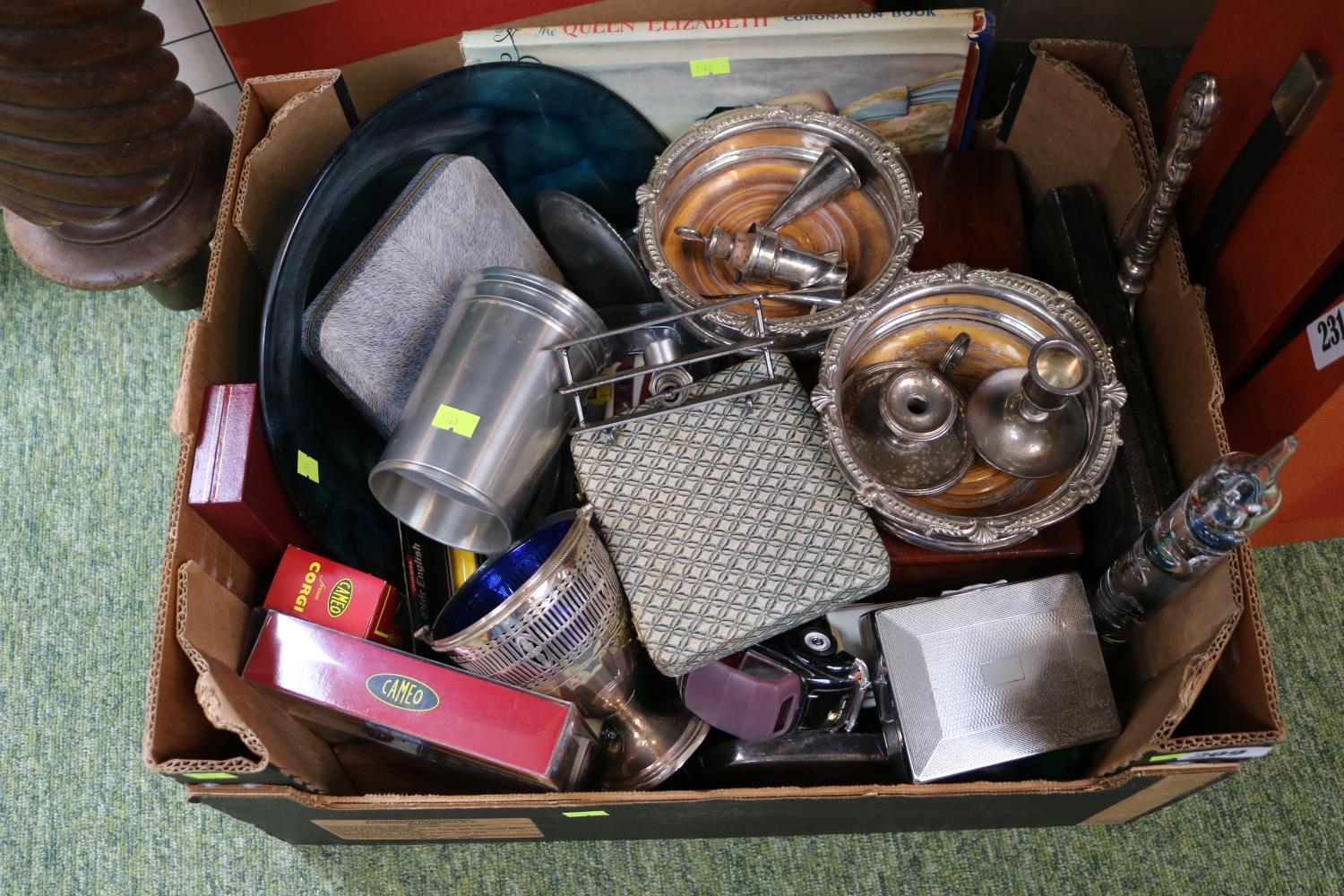 Collection of assorted Bygones to include Wine coasters, Silver plated tableware etc