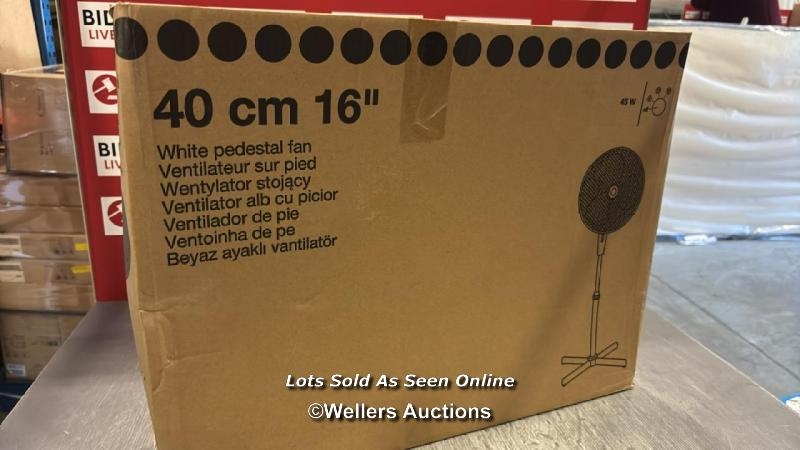 WHITE STAND FAN 16INCH 3 SPEED / VIEW, BID AND BUY IN THE ROOM, THEN TAKE AWAY THE SAME DAY / VIEWING FROM 8AM ON THE DAY OF THE SALE