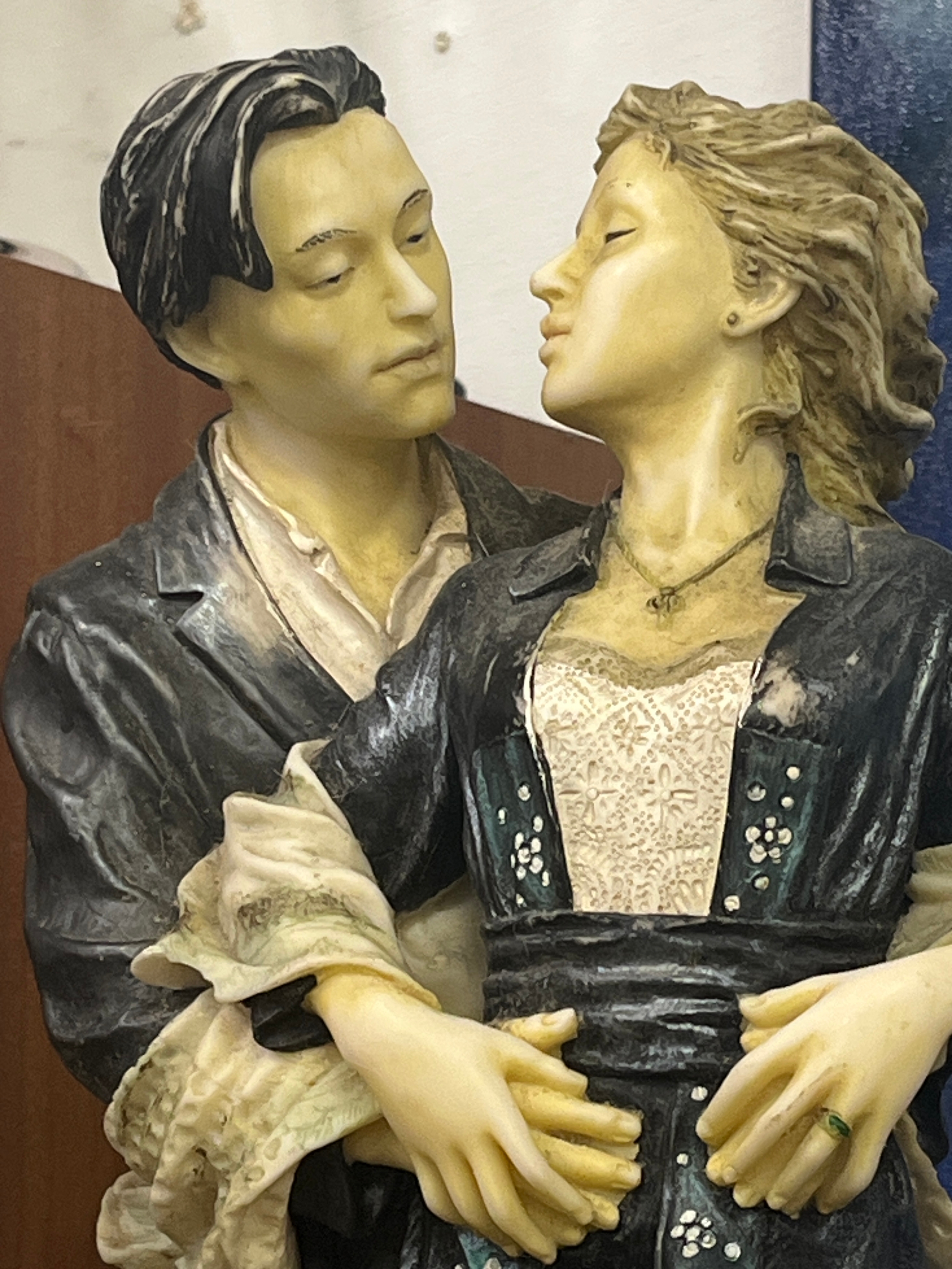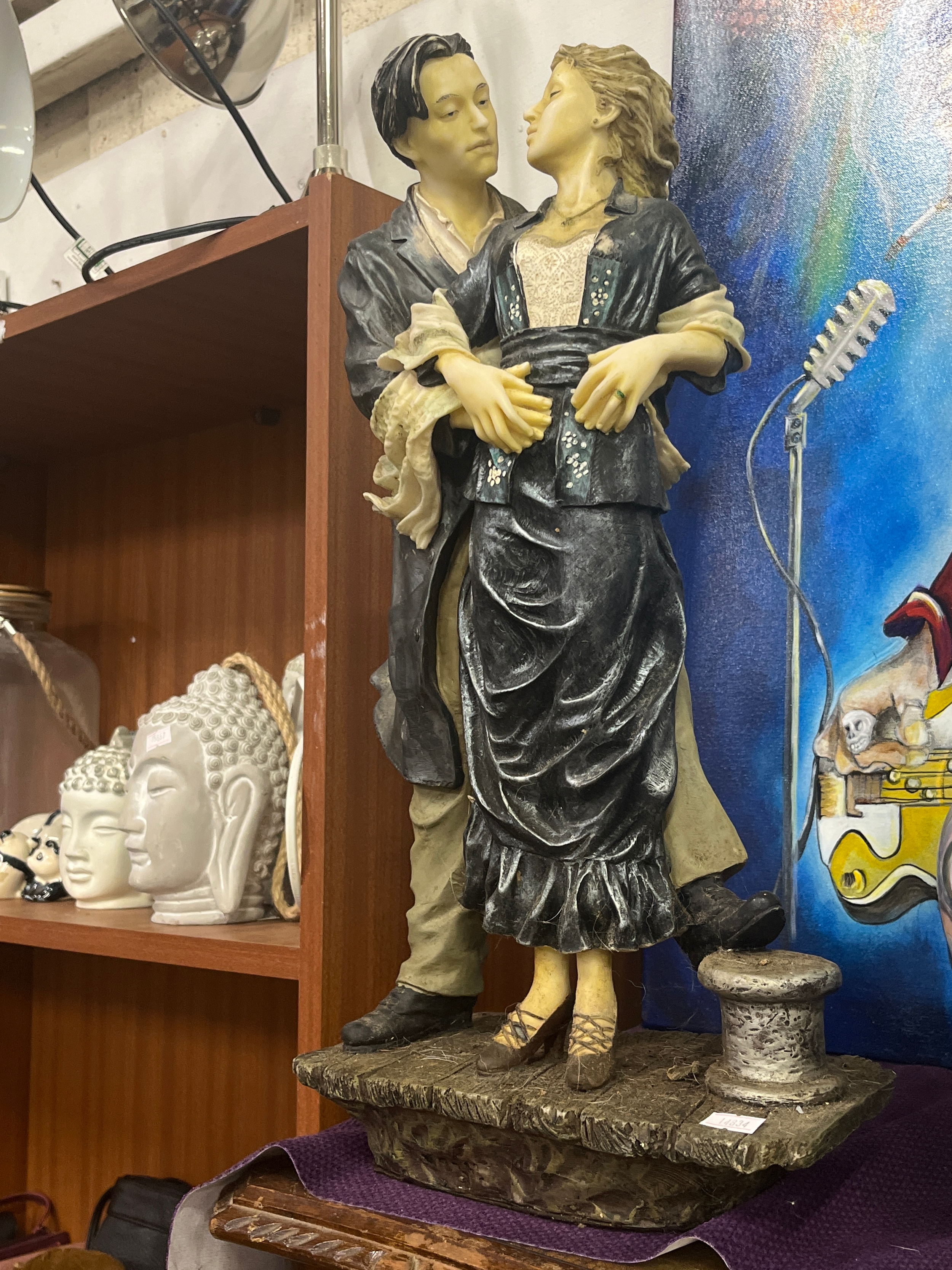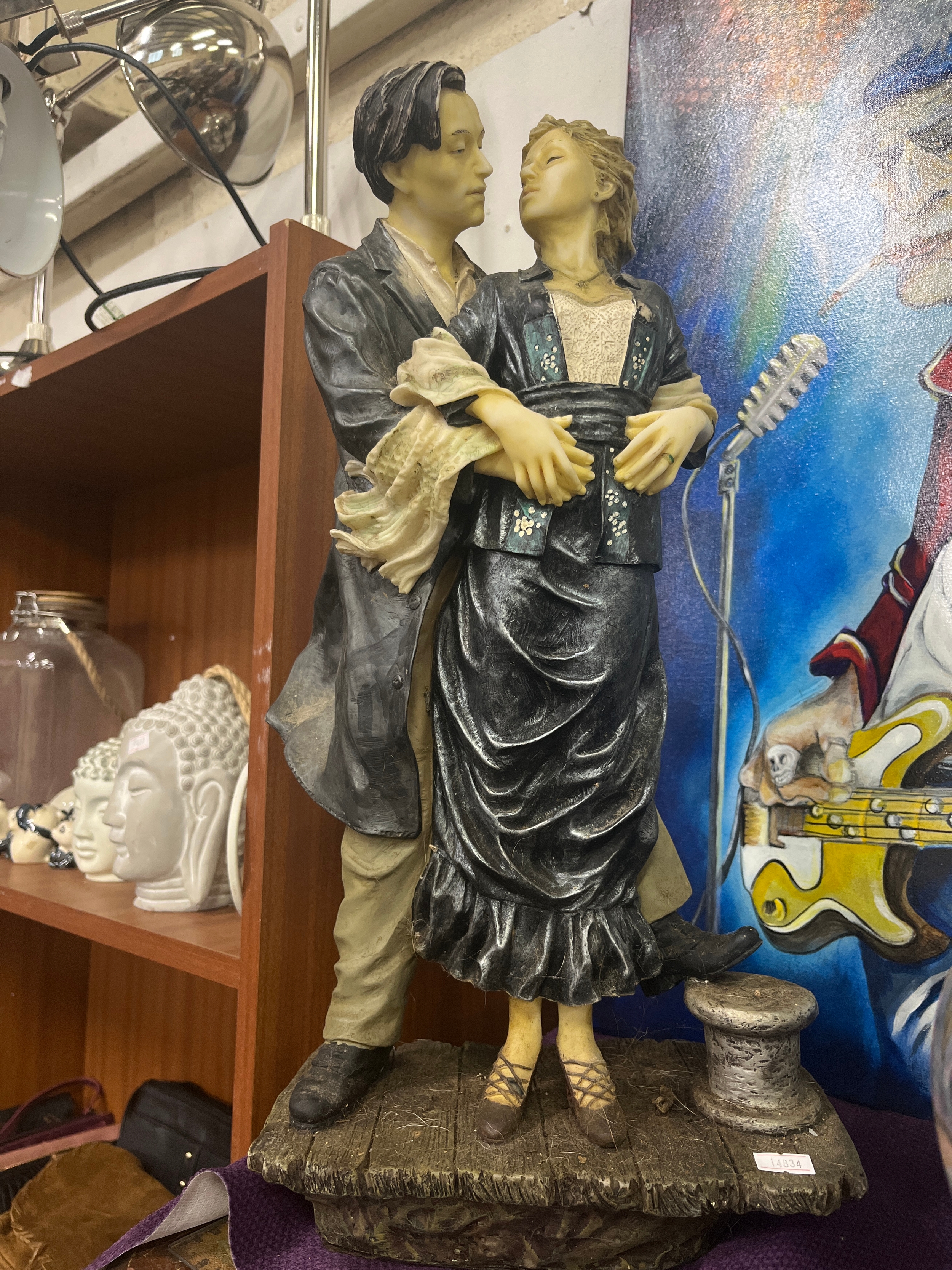 This is a late 20th-century 'Romantic Moments' sculpture, depicting a couple in an embrace.