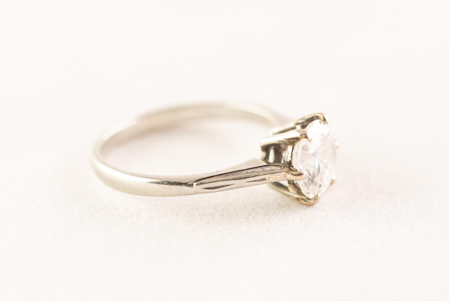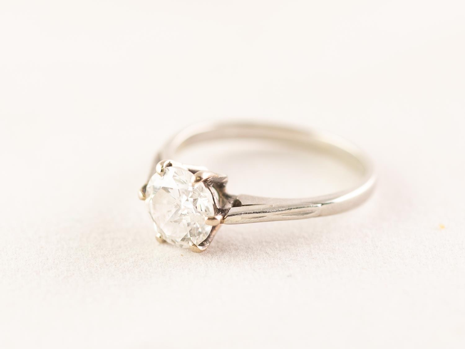 PLATINUM OR WHITE GOLD SOLITAIRE DIAMOND SET RING, approximately 1.25 carat (spread)