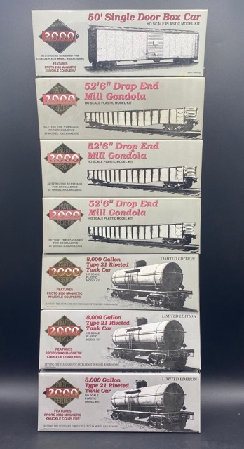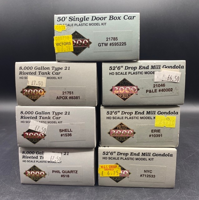 7 North American Outline HO unbuilt-kits Rolling Stock. Appearing complete from Proto 2000 Series as shown