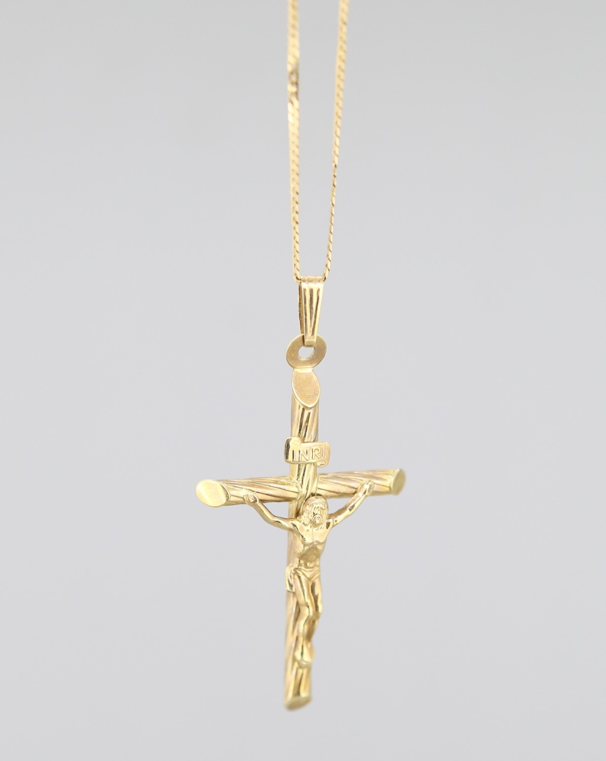 9 Carat Yellow Gold Crucifix Pendant 4cm Set on 9 Carat Yellow Gold Chain 42cm Long