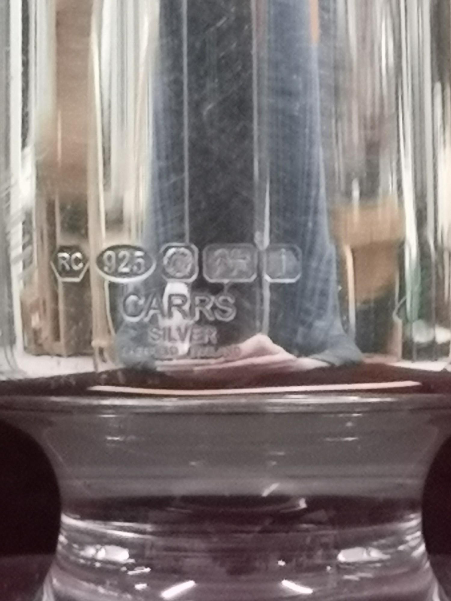 Silver Hall marked sheffield topped decanter makers Robert Carr Ltd.