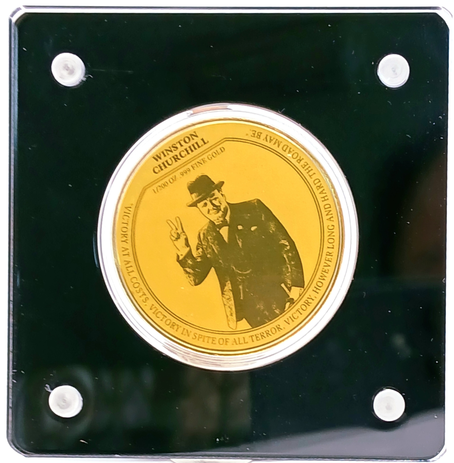 A Commemorative 'Winston Churchill' Gold Coin Card. 1/200th oz of fine gold (.999). Comes with COA and case. Limited edition.