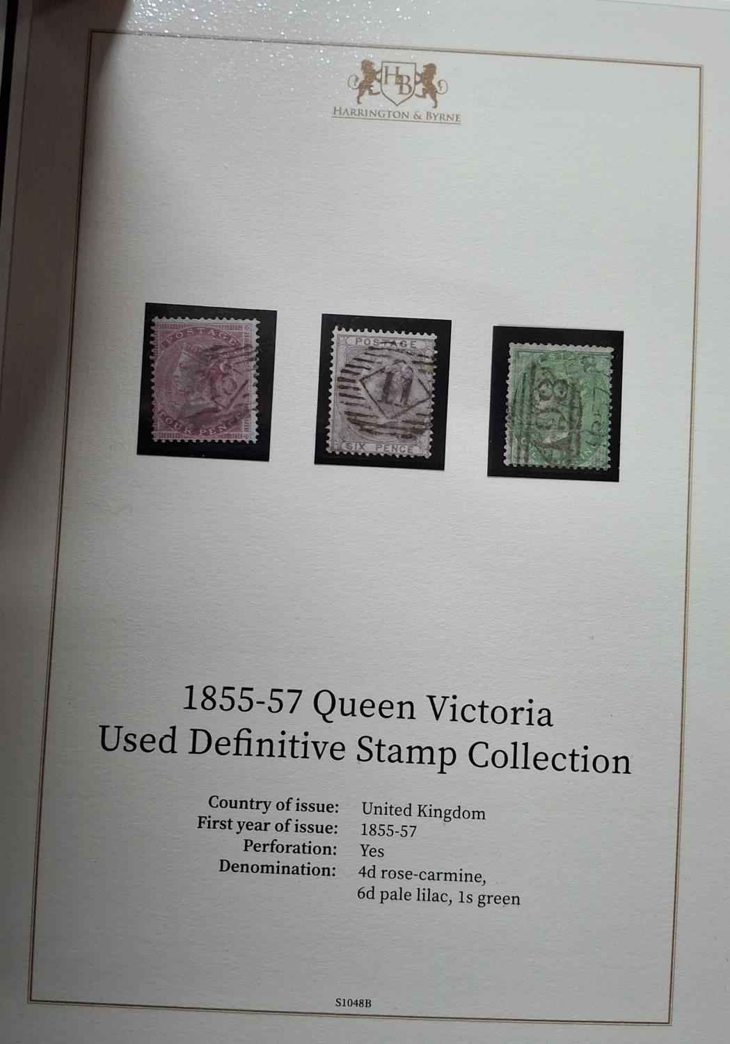 Two Harrington & Byrne folders, both containing used QV surface printed GB stamps