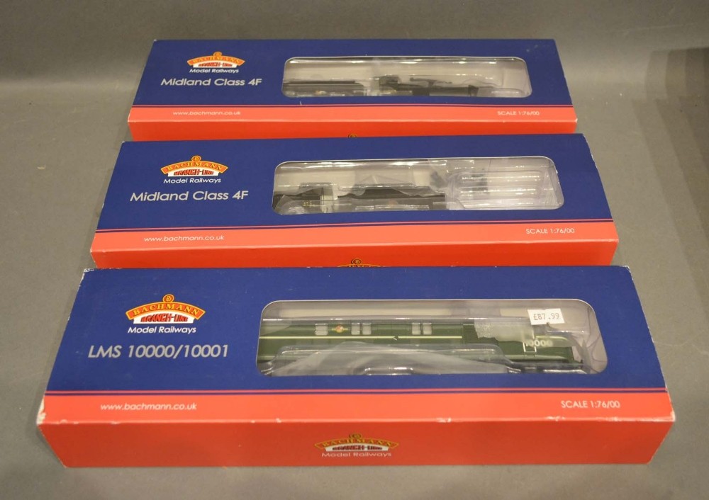 A Bachmann OO Gauge Locomotive number 31-881 Midland Class 4F within original box, together with another similar 31-882 and another 31-996 LMS 10000-10001
