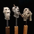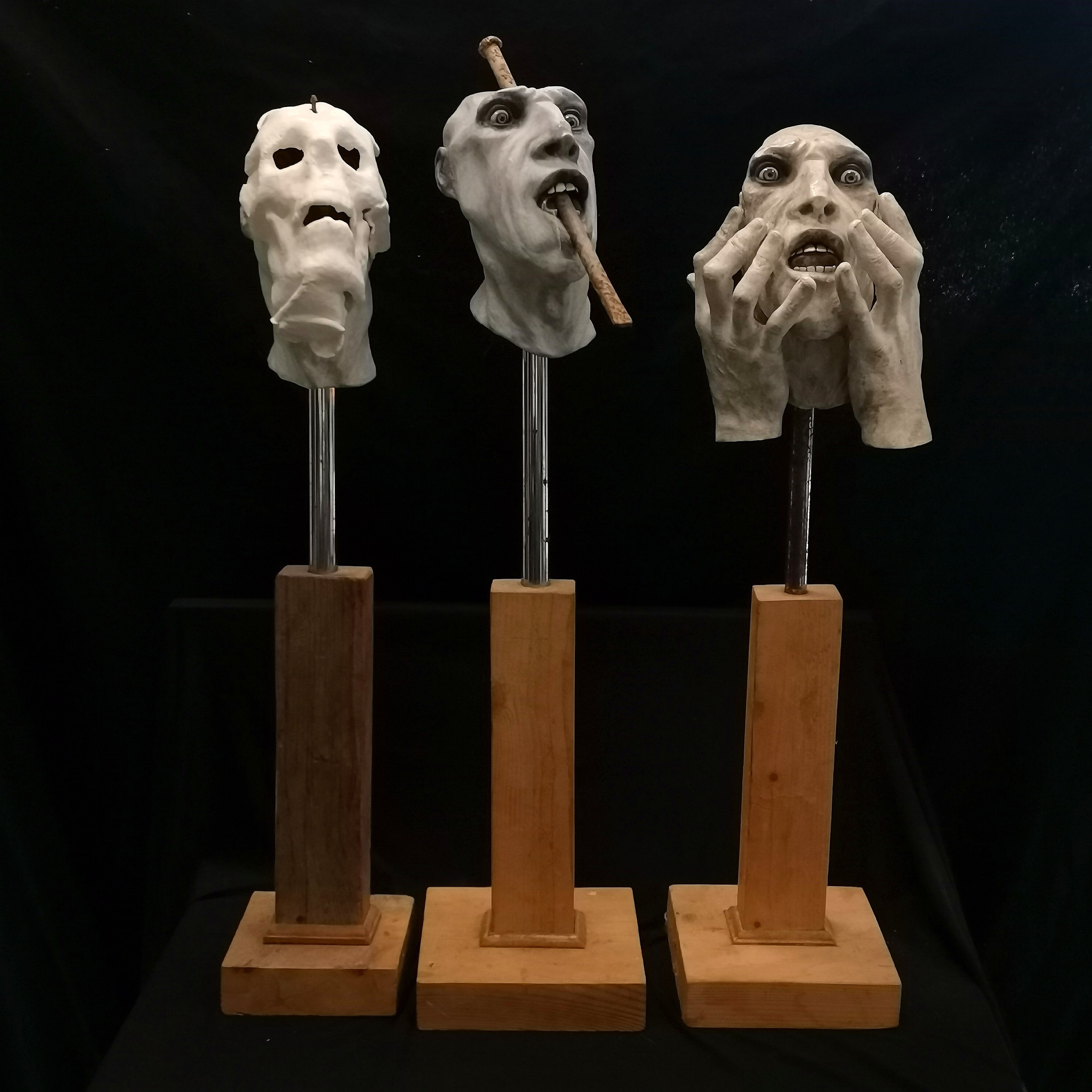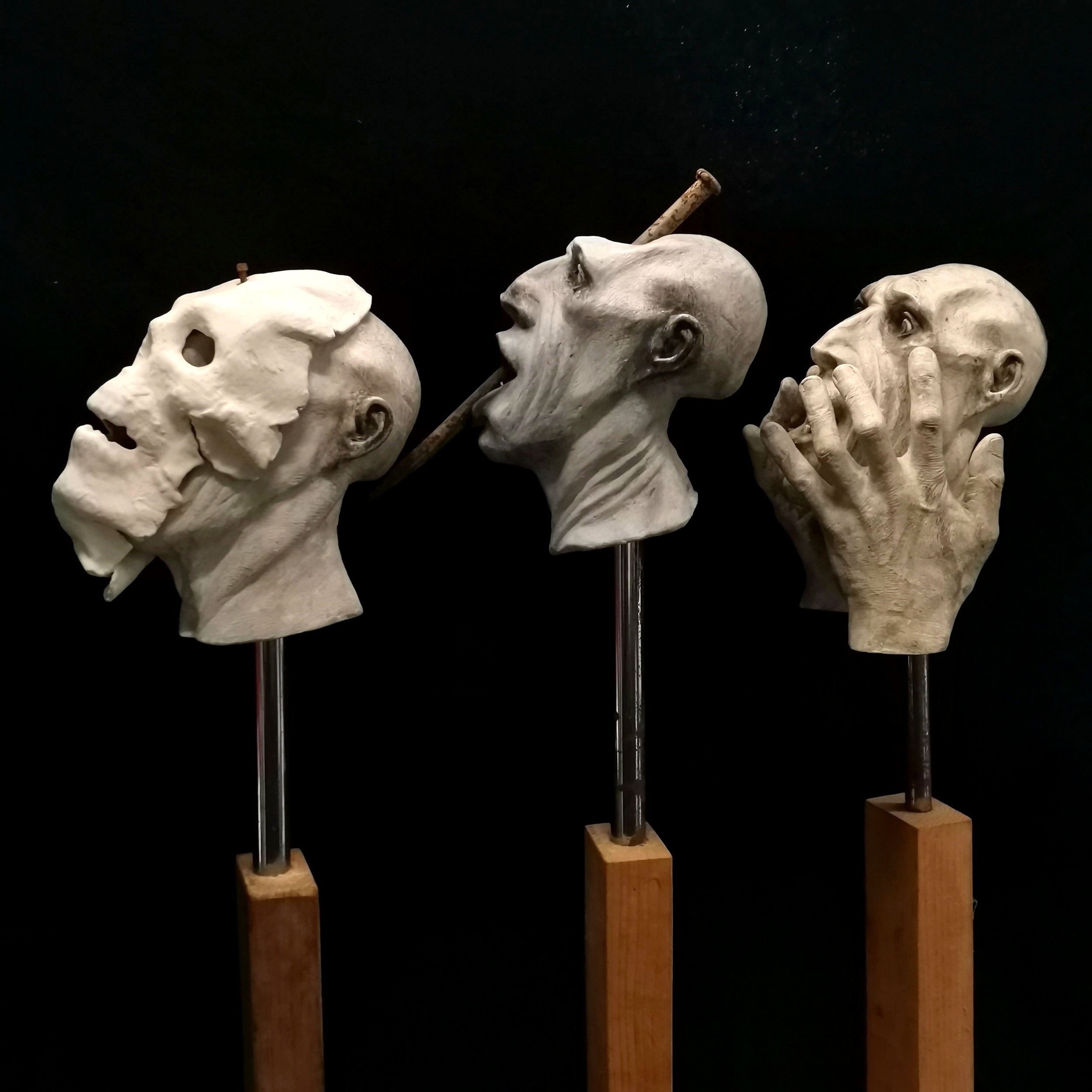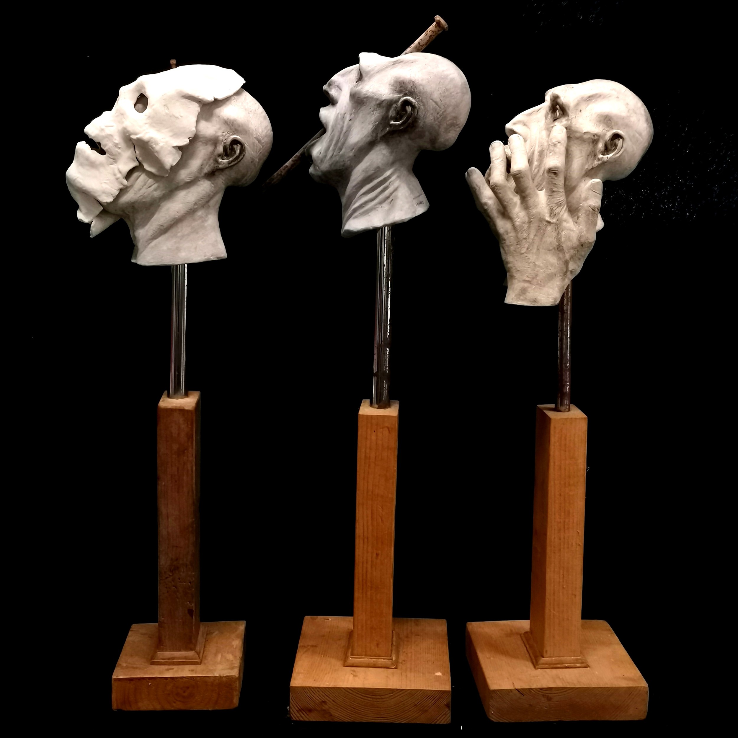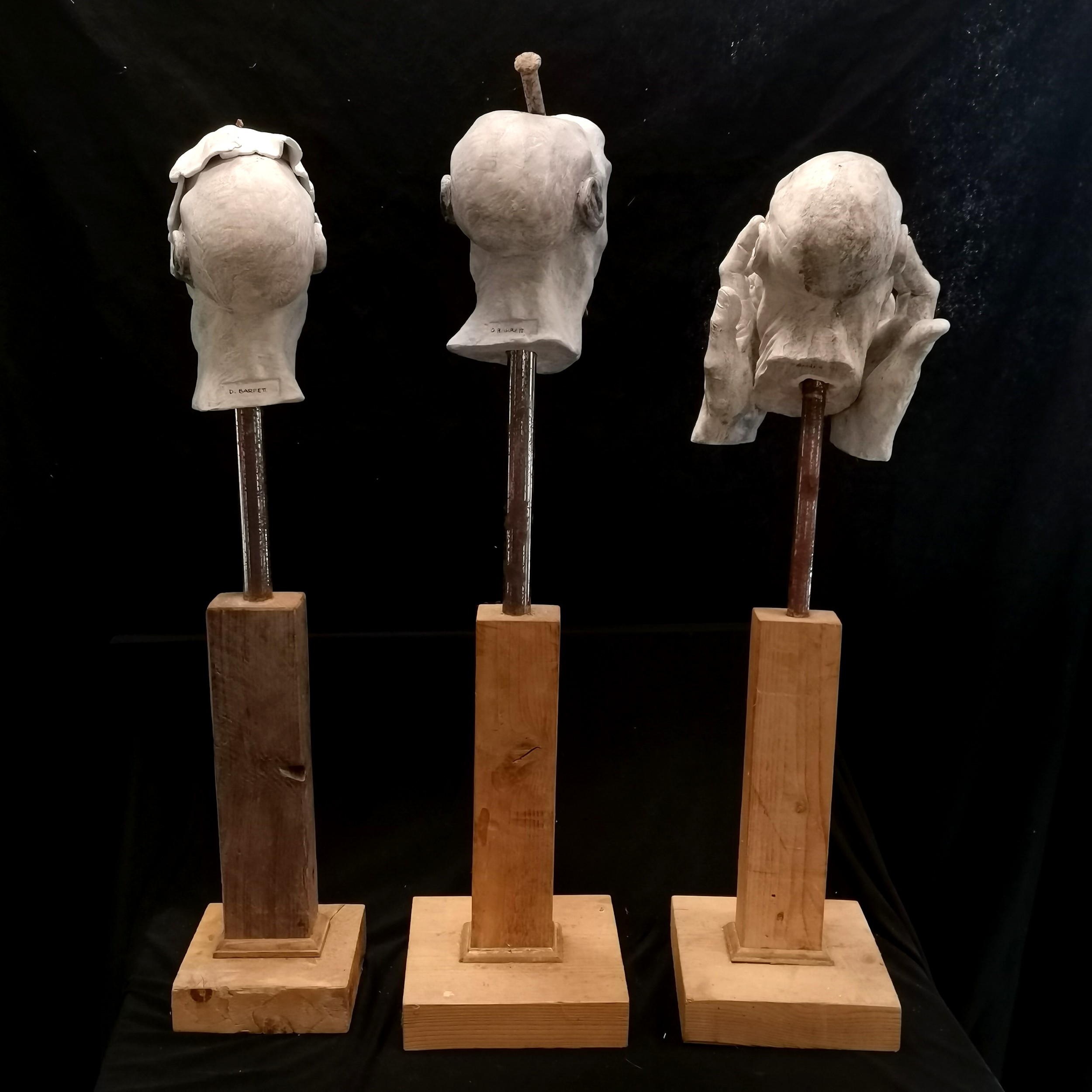 D Barrett 3 x original grotesque plaster sculptures on wooden bases - tallest 84cm