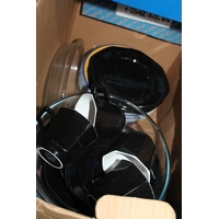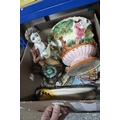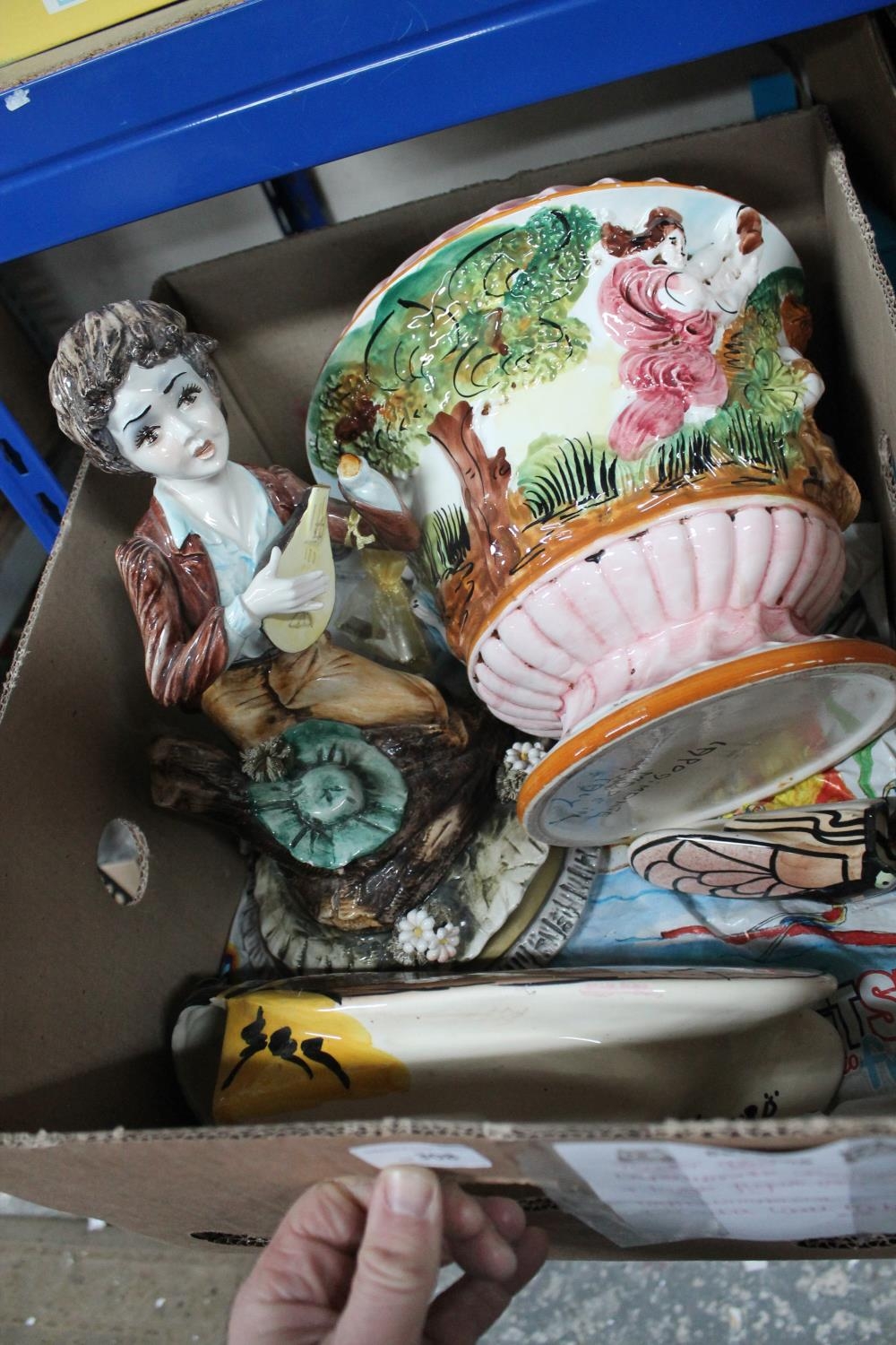 BOX CONTAINING CAPODIMONTE JARDINERE AND LARGE FIGURE A/F WITH CONTINENTAL CICADA WALL POCKETS