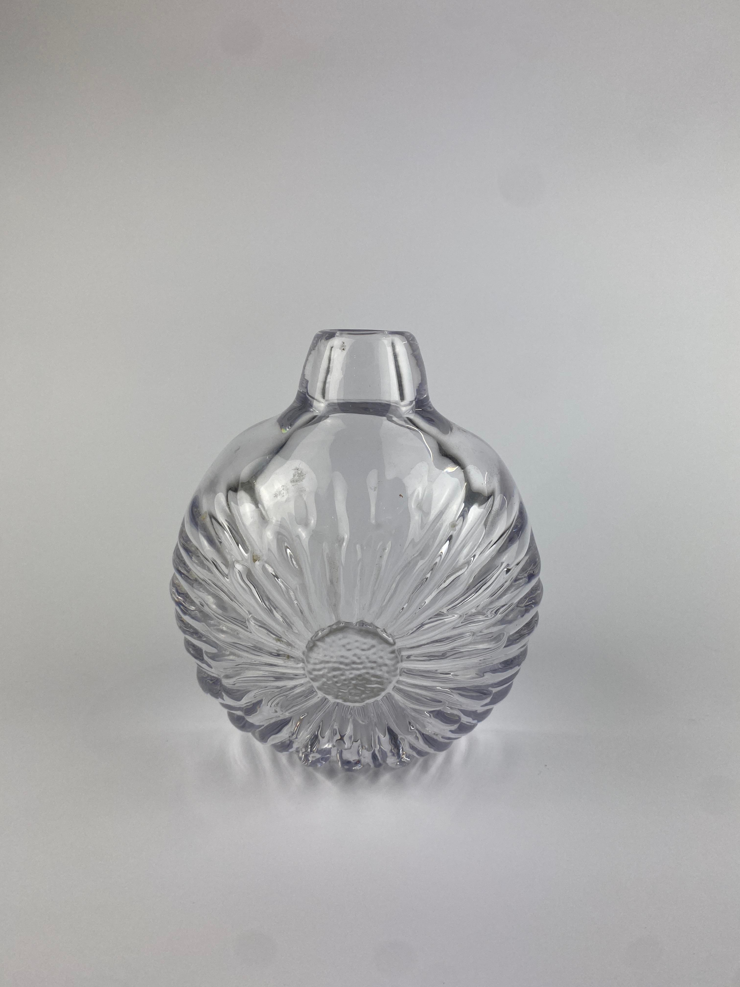 Attributed to Helena Tynell for Riihimaen Lasi (Finland), a heavy glass vase with sunflower type decoration, 18cm high.