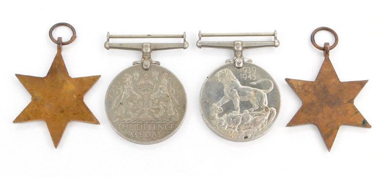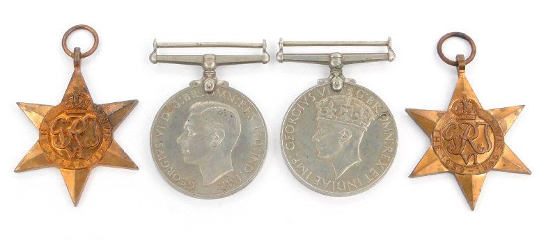 World War II British military medal group comprising 1939-45 War medal, 1939-45 Star, Defence medal and Atlantic Star