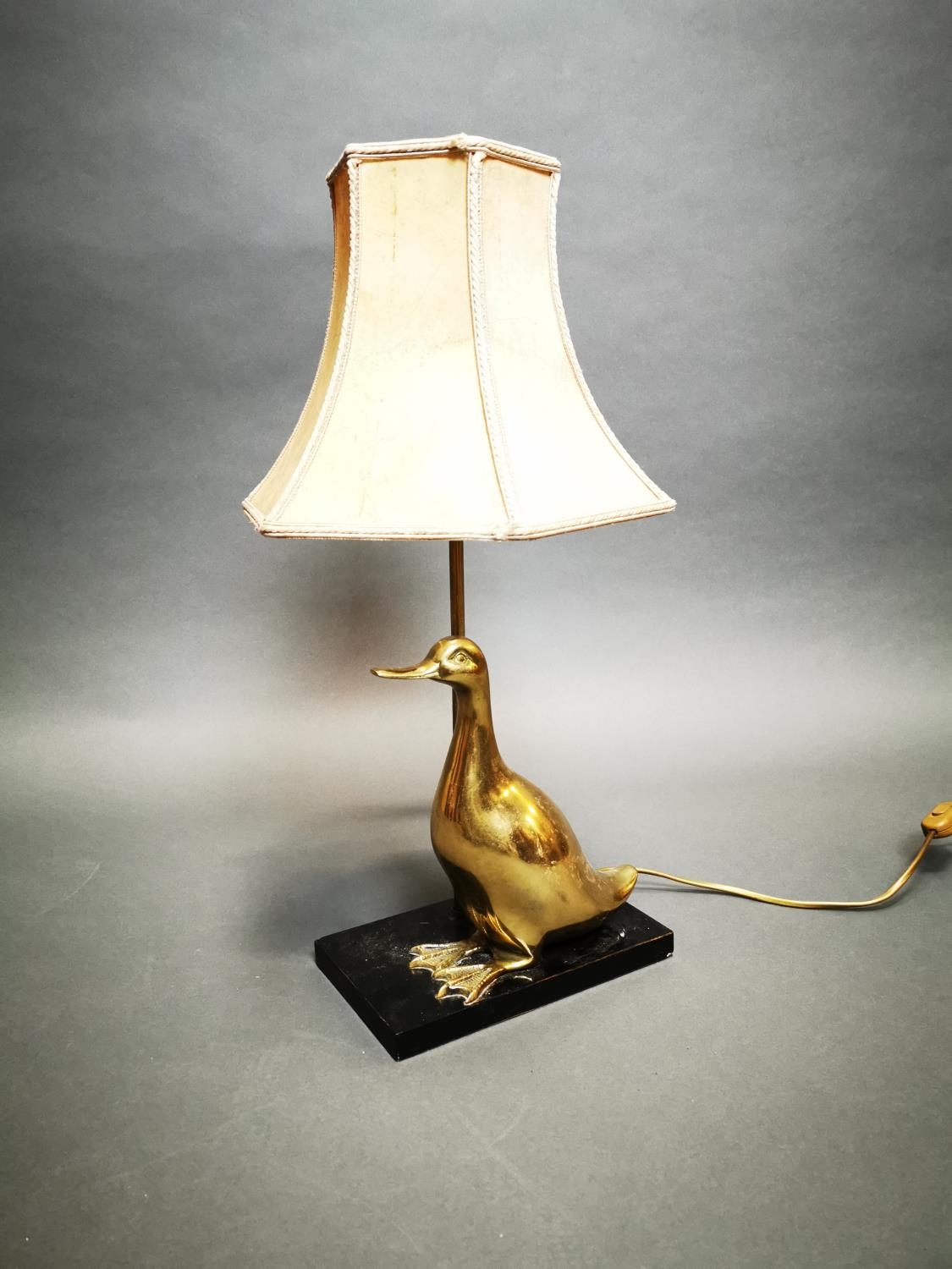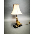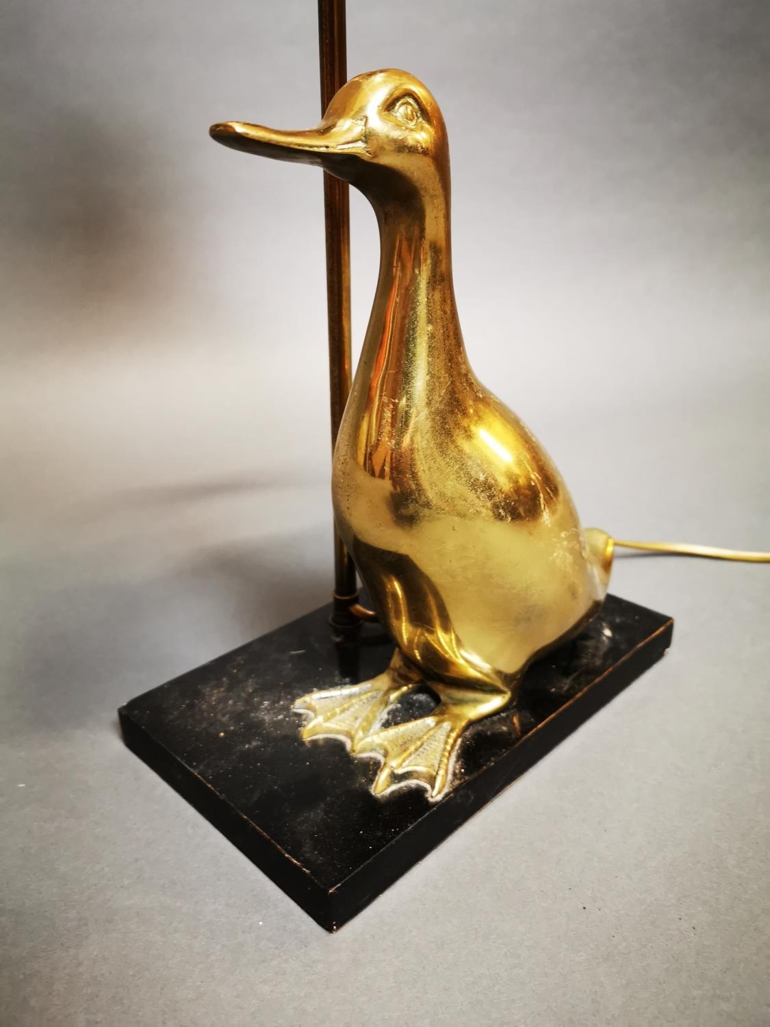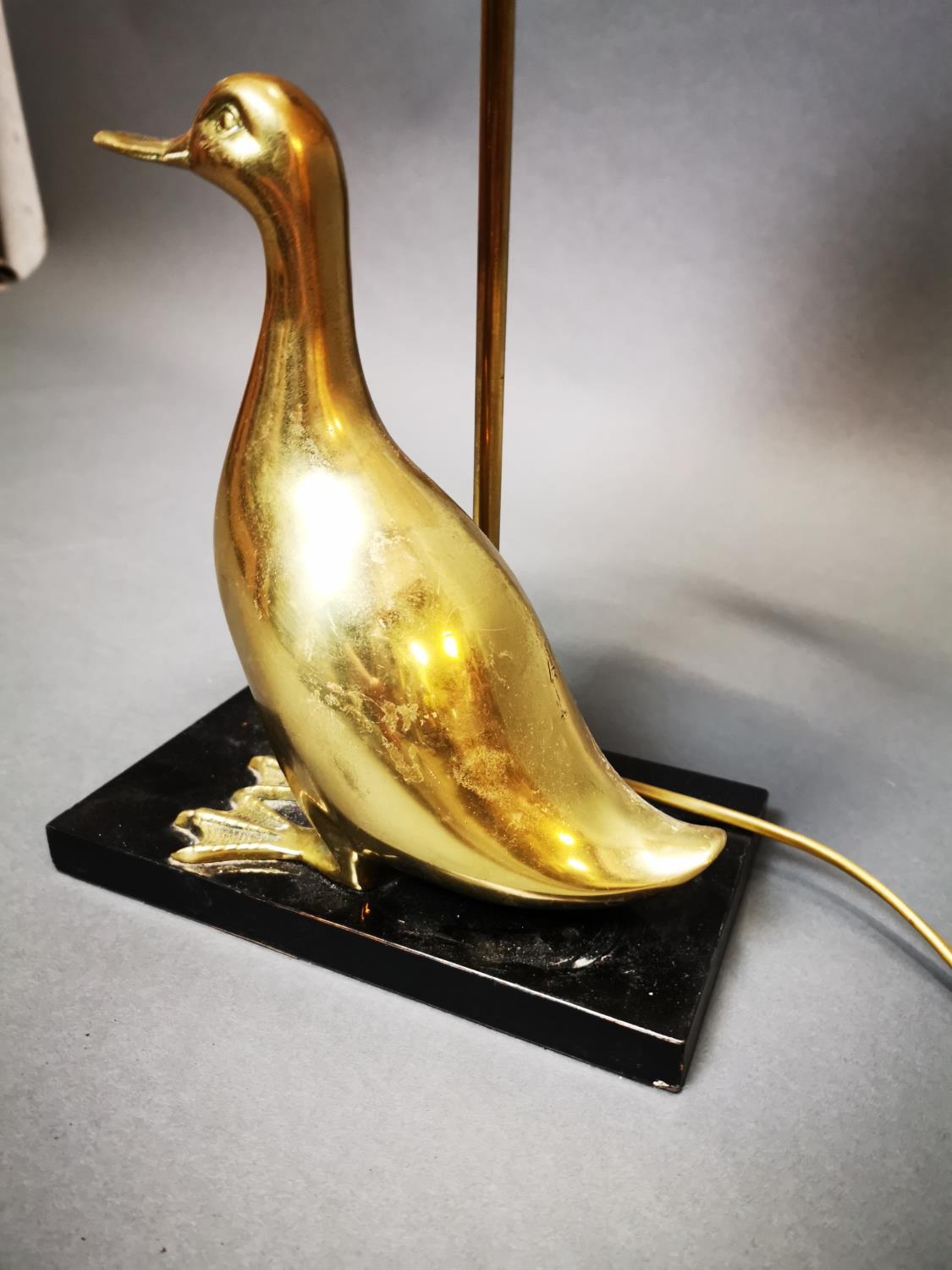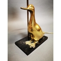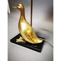 Decorative brass table lamp in the form of a duck mounted on marble base {53 cm H x 23 cm W x 14 cm D}