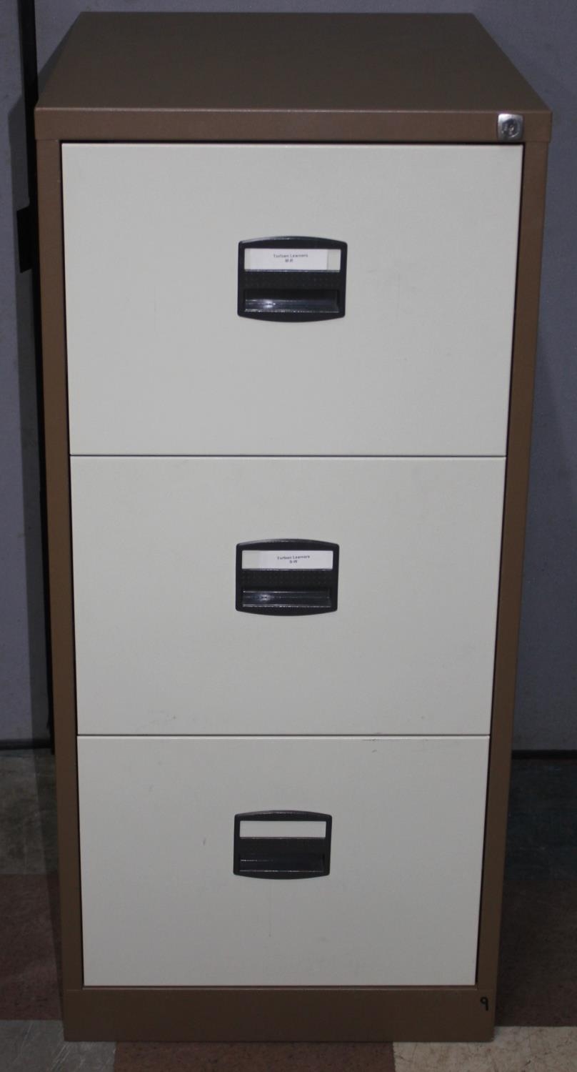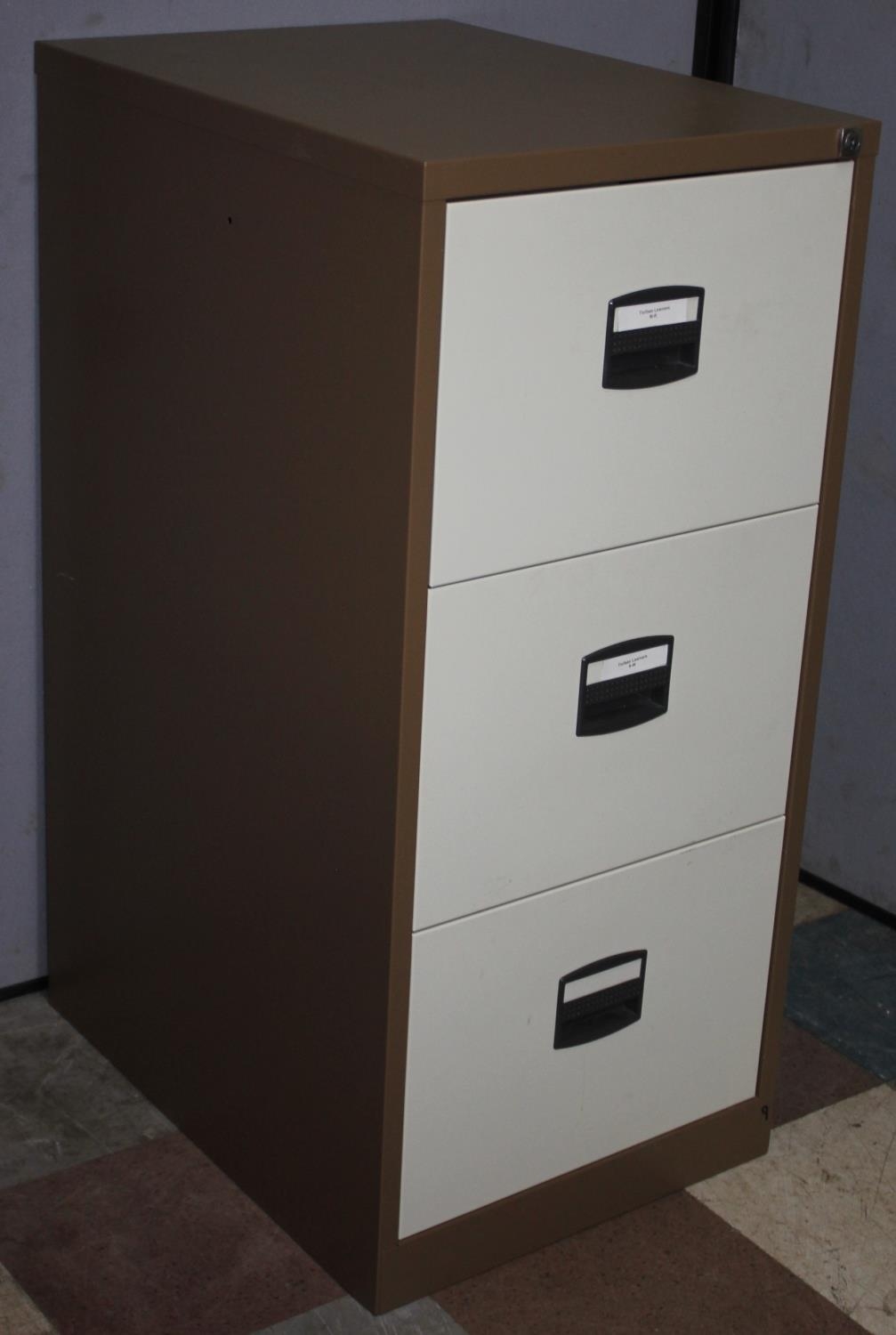 3-DRAWER BROWN AND CREAM FILING CABINET WITH KEY