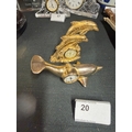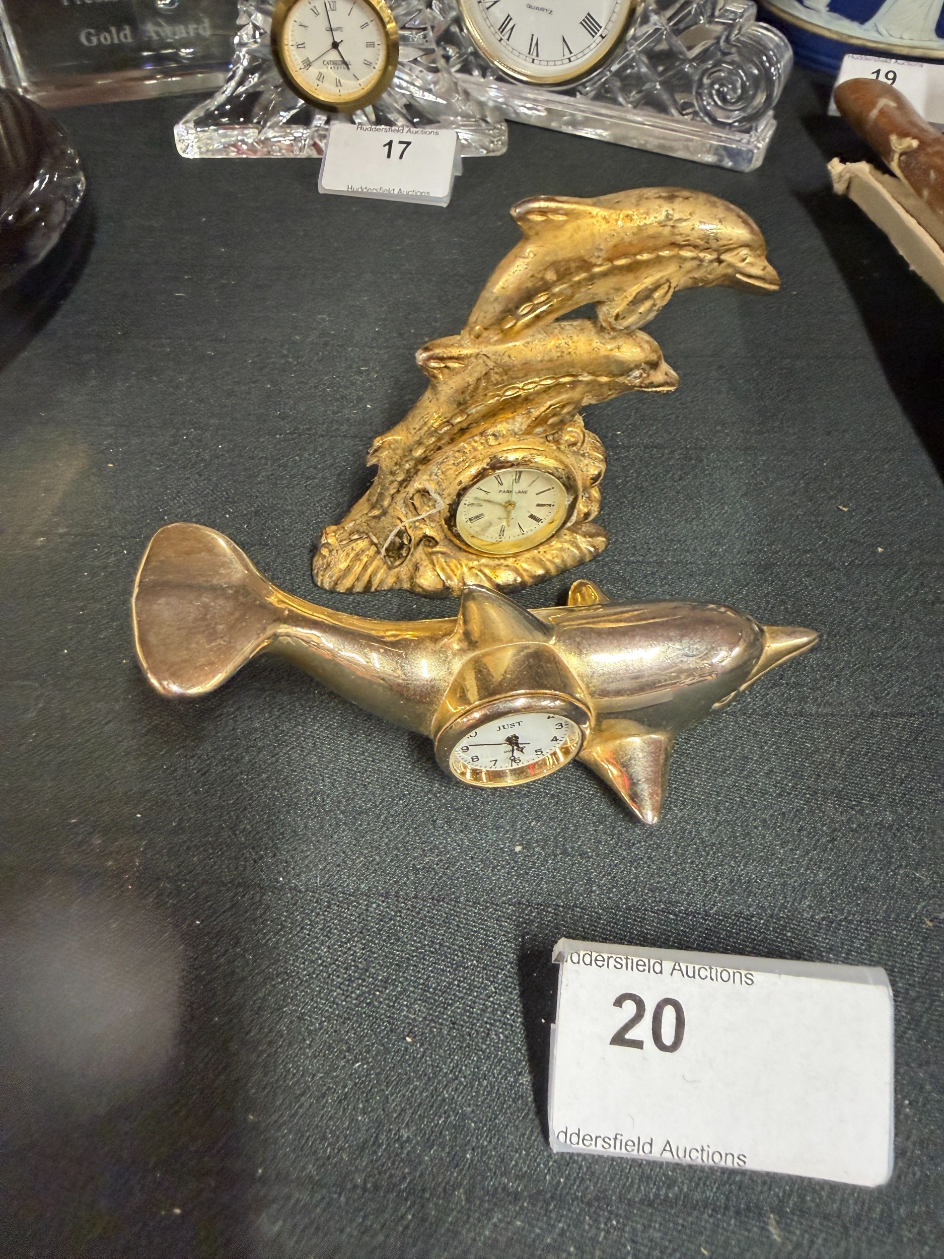 2 Brass Coloured Dolphin Mantel Clocks