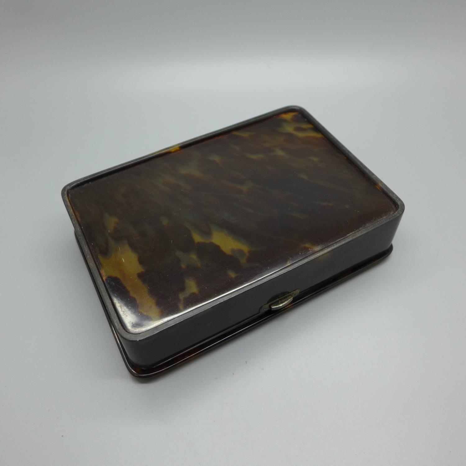 A silver mounted tortoiseshell box, London 1914, 158mm wide