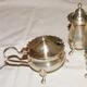 Irish Silver 3-Piece Condiment Set, mustard pot and salt with blue glass liners, made by the Royal Irish Silver Company, Dublin 1973 with mark to commemorate Ireland's entry into the European Community, weight 153grams (5.4ozs)