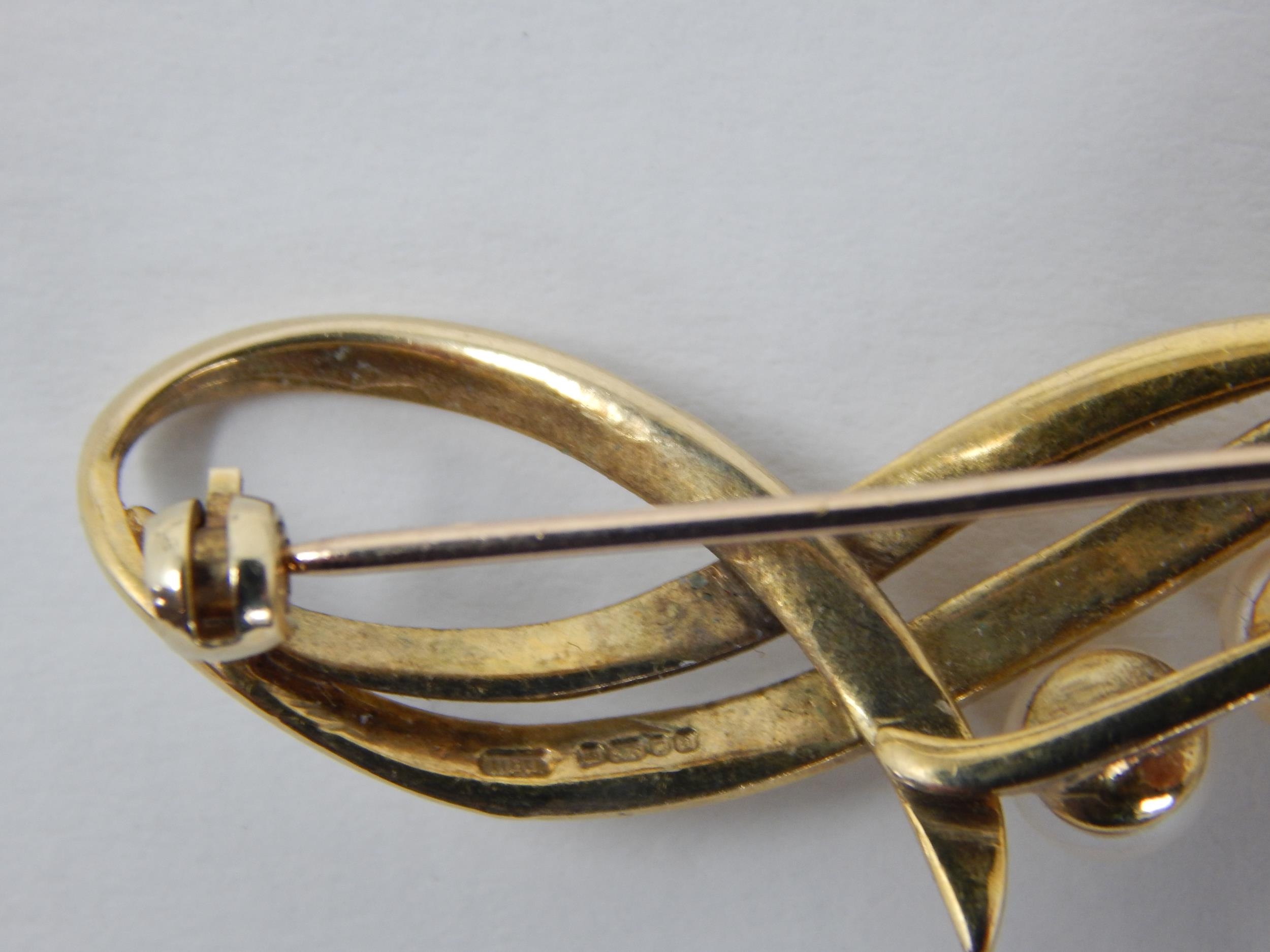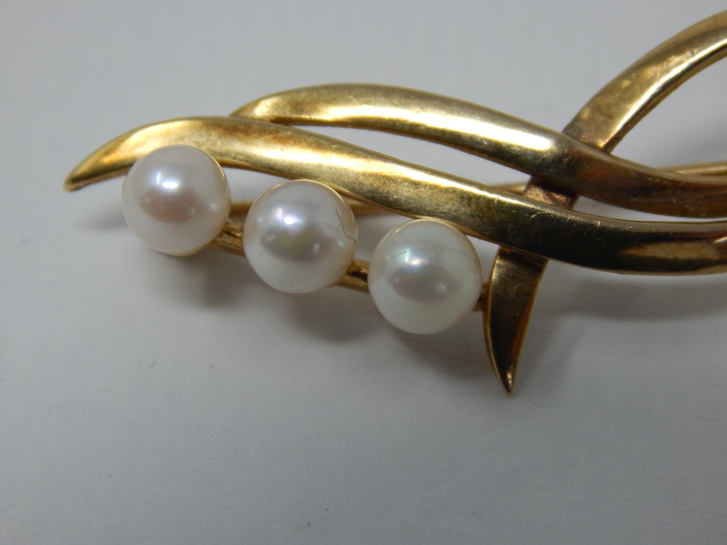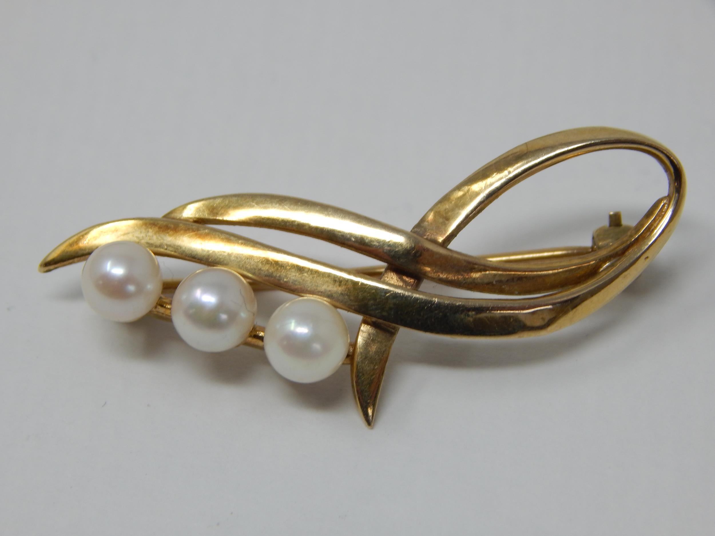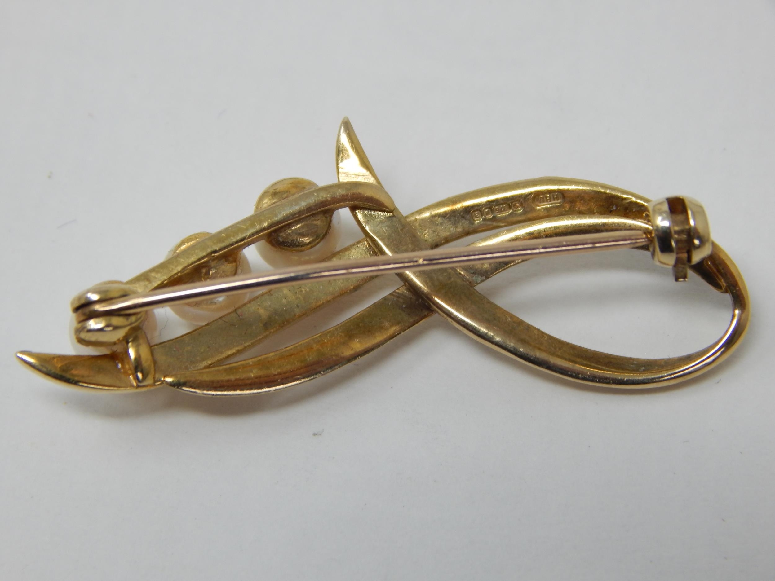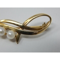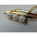9ct Yellow Gold Brooch Inset with Three Pearls: Gross weight 4.4g