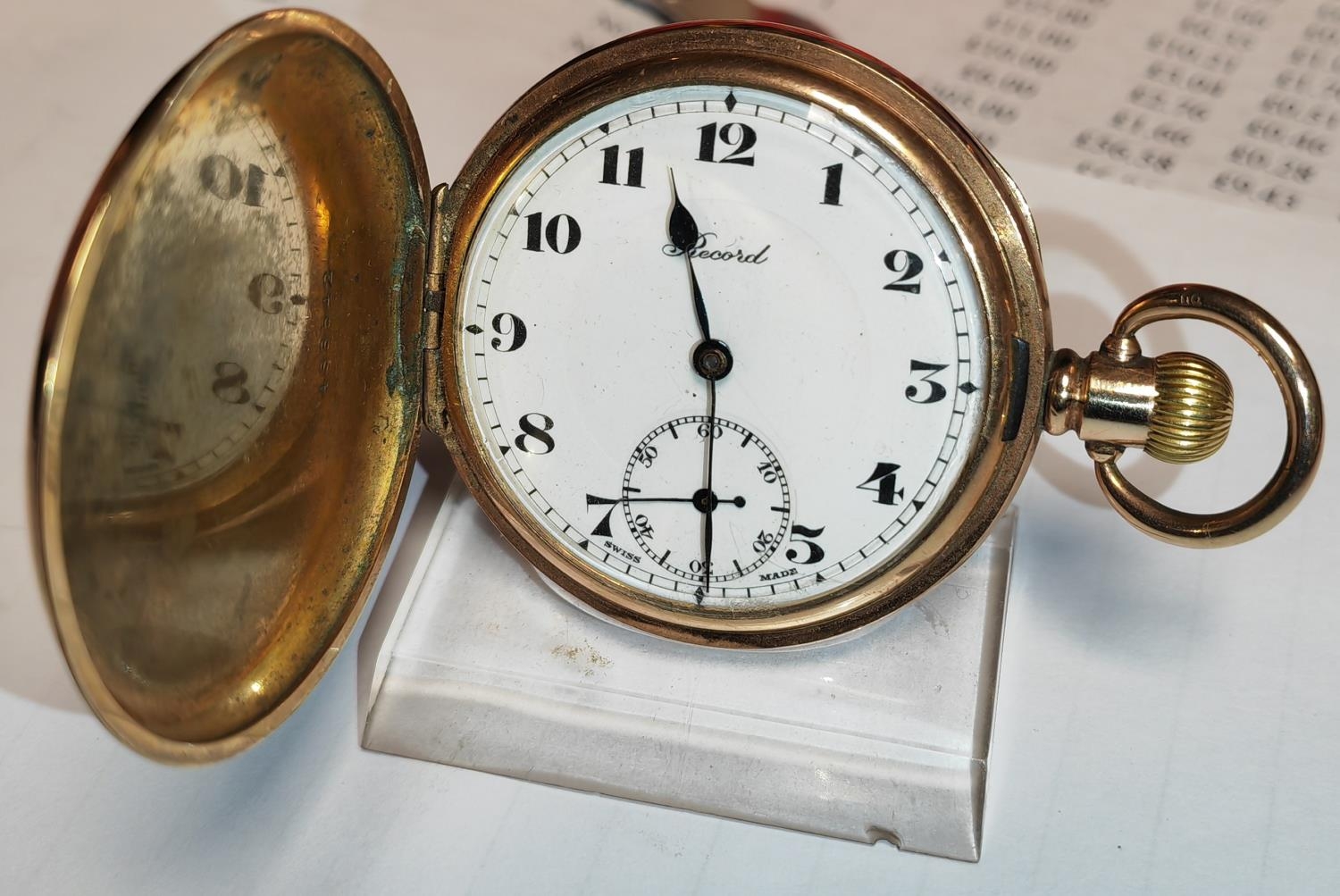 Record Gold Filled Cased Full Hunter Pocket Watch Manual Wind 15 Jewelled Top Quality Movement C1920'S/30'S Working When Listed