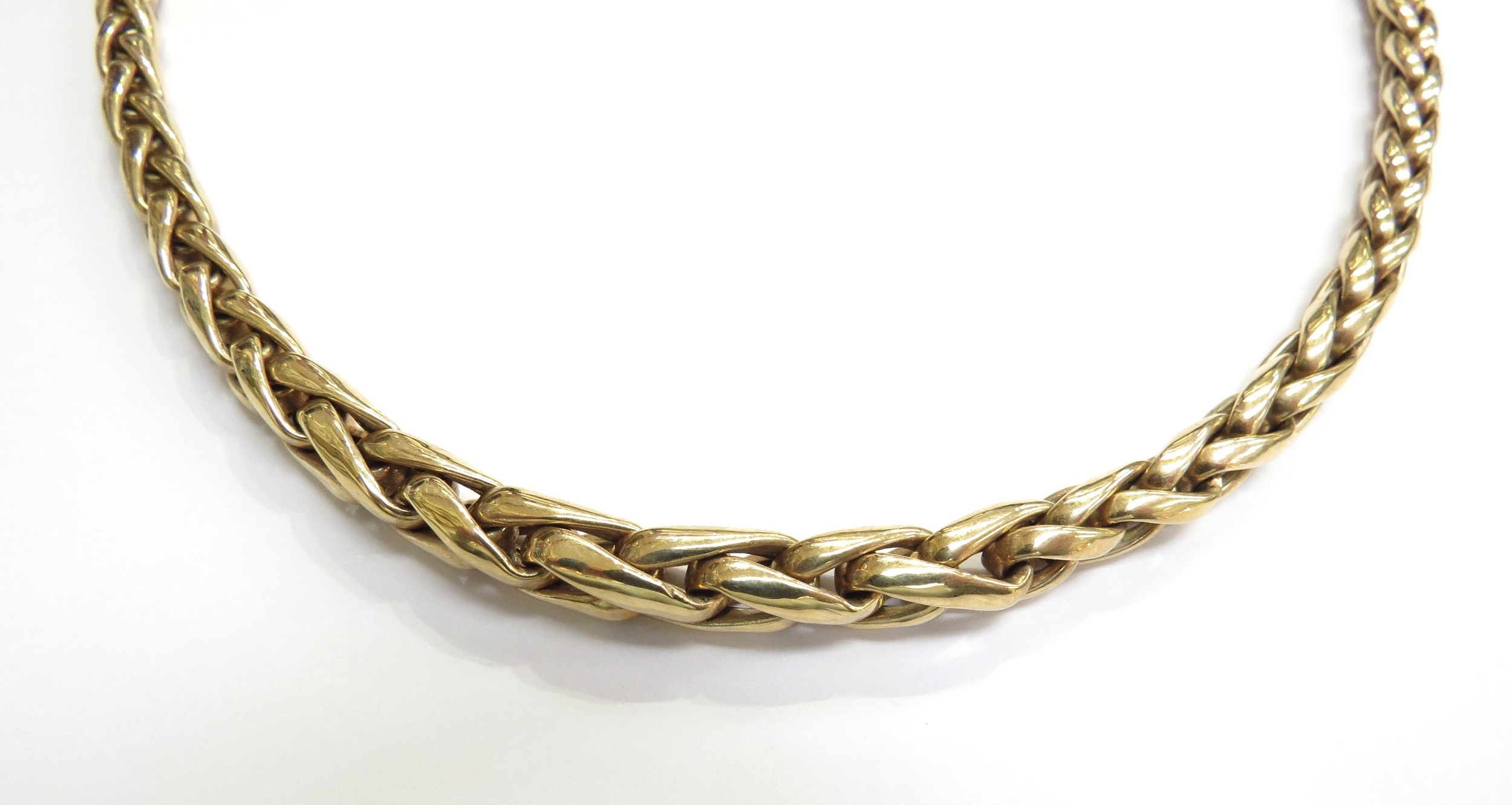 A 9ct gold graduated fancy link neckchain, 42cm long, 25.9g, in Dipples box