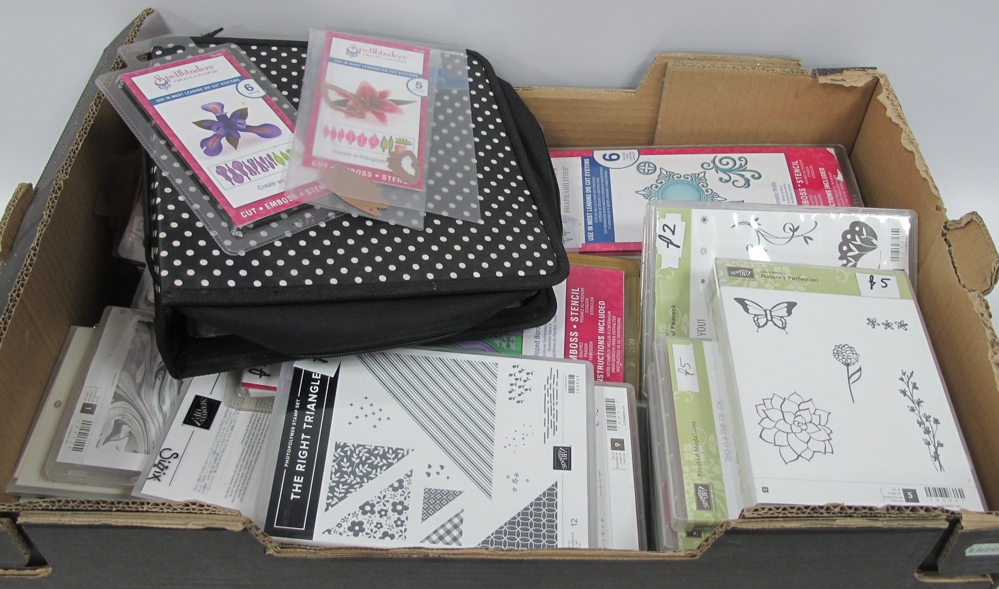 Crafting Tools in Large Quantity, including stamps, dies and shapes in wood and metal, mostly unused:- One Box.