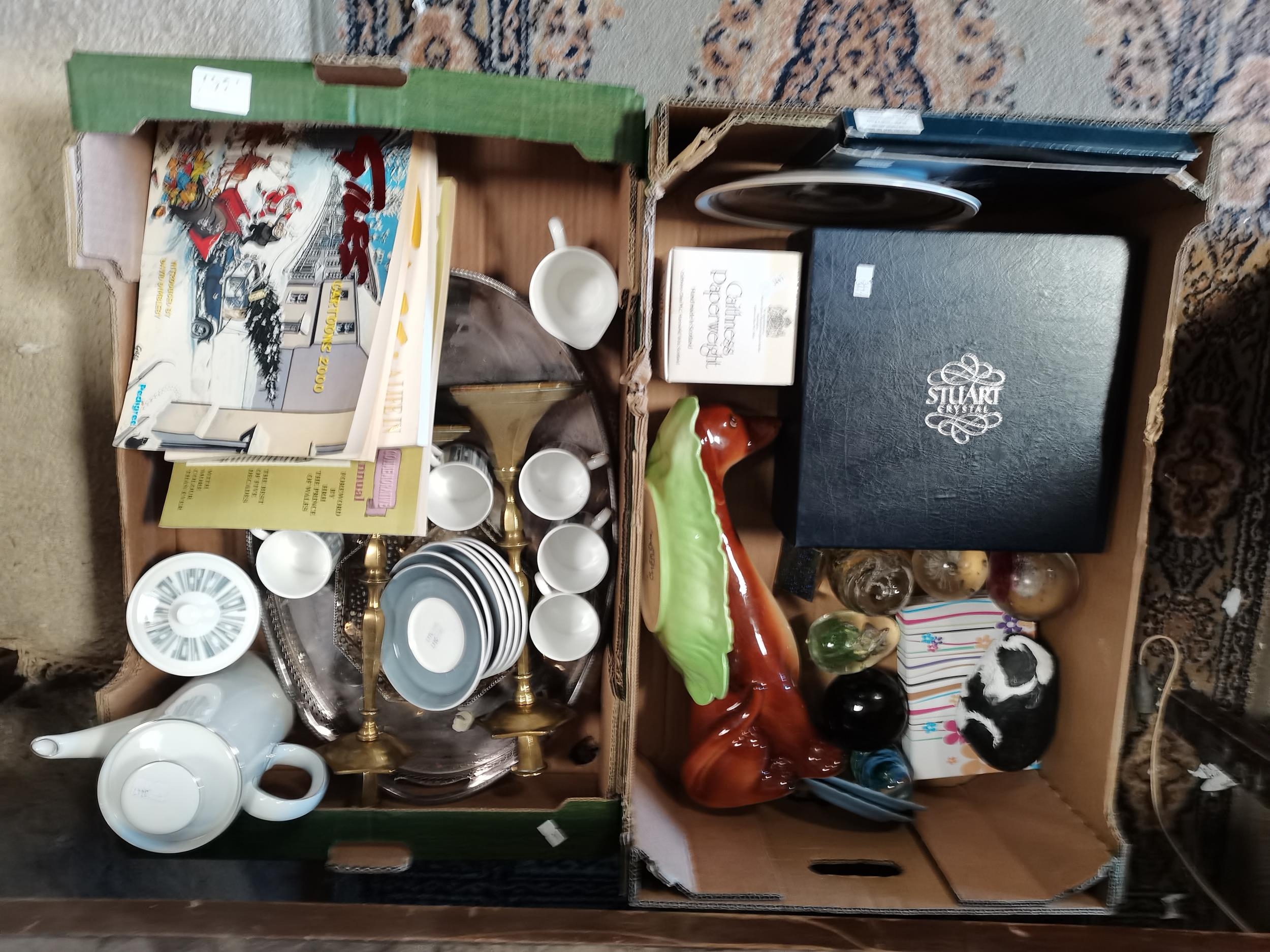2 x misc boxes incl Giles books, Tuscan coffee set, paperweights, etc