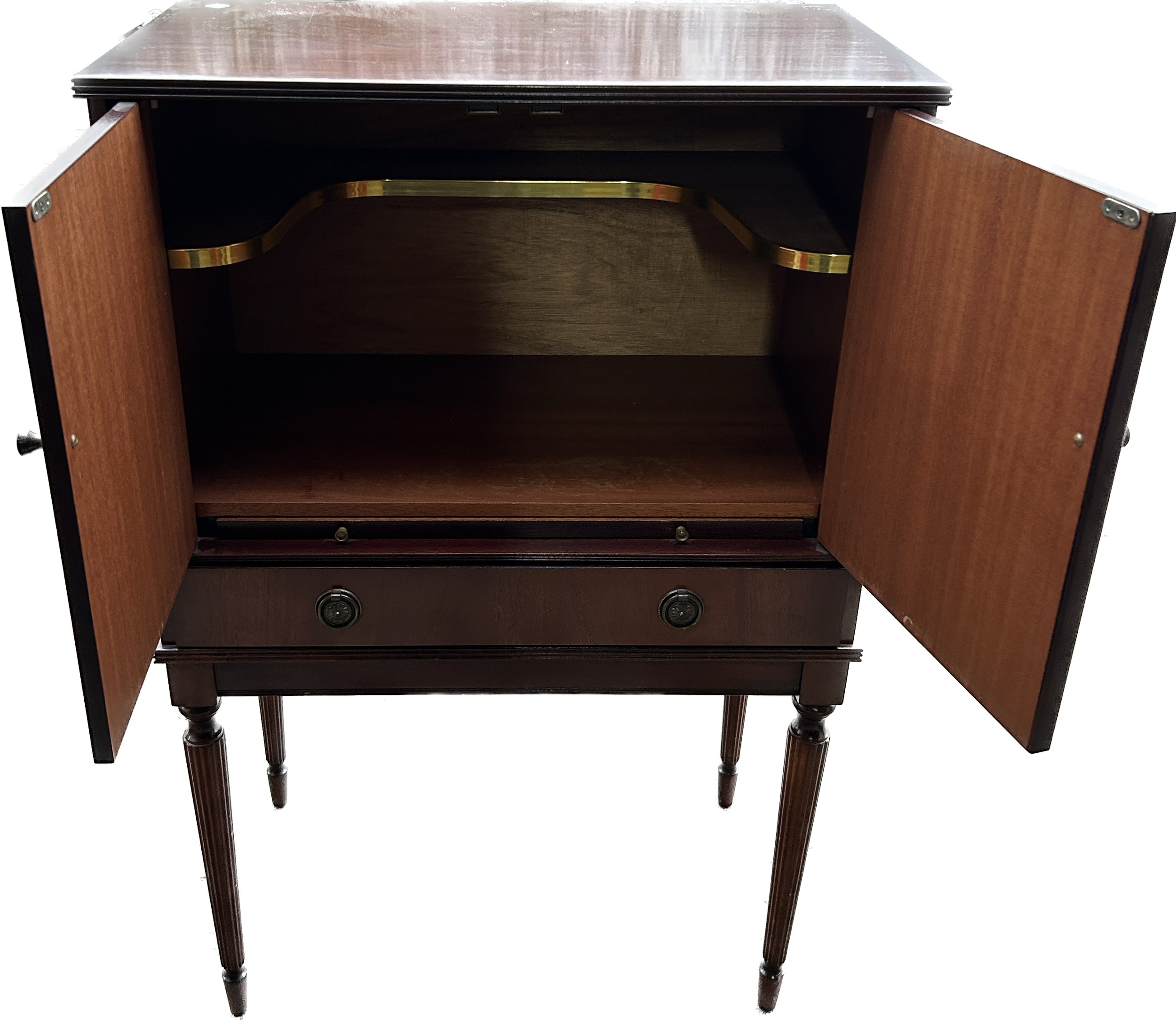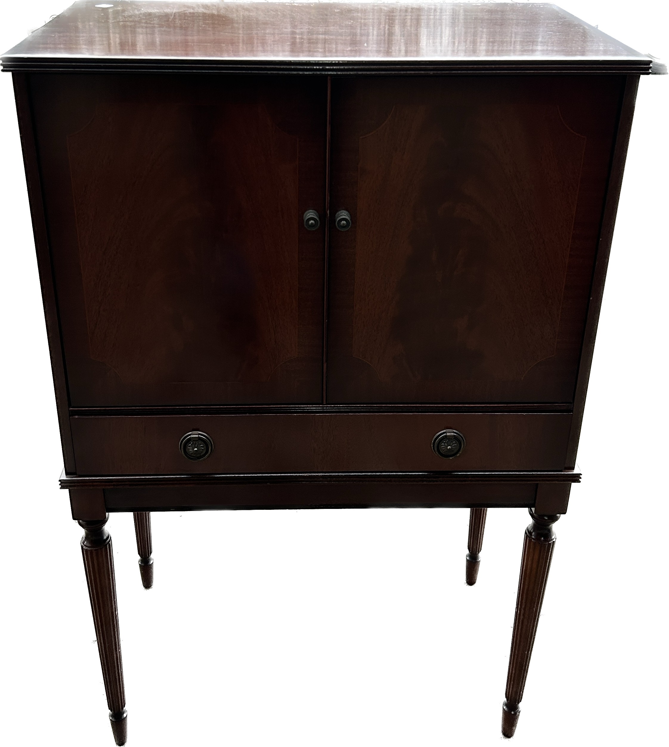 2 Door, 1 Drawer mahogany drinks cabinet, approxmate measurementds height 43.5 inches, Width 28 inches, Depth 16.5 inches