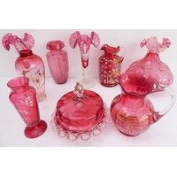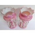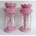A pair of 19th century pink glass table lustres (30 cm high)