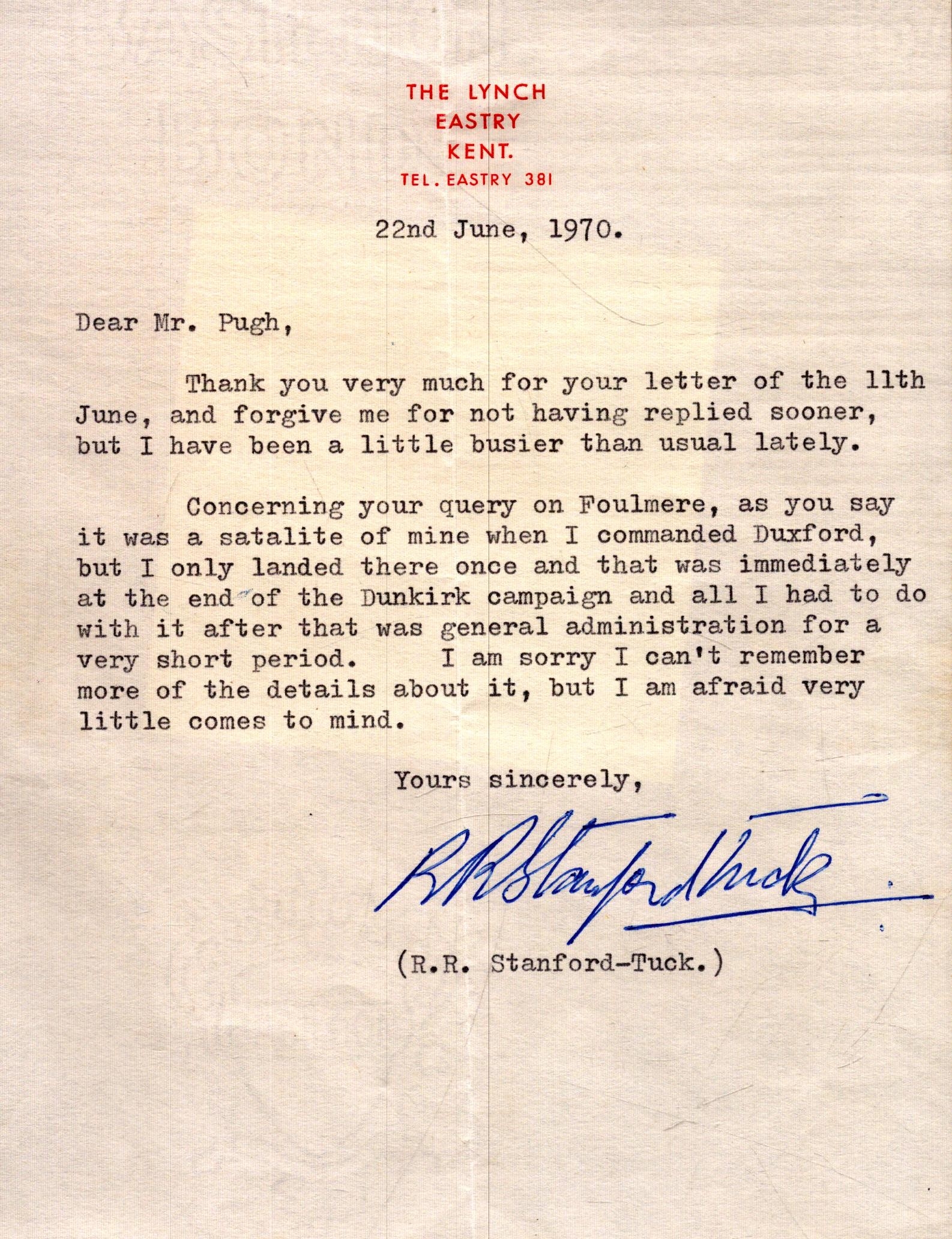 Robert Stanford-Tuck TLS dated 22/6/70 concerning Foulmere.