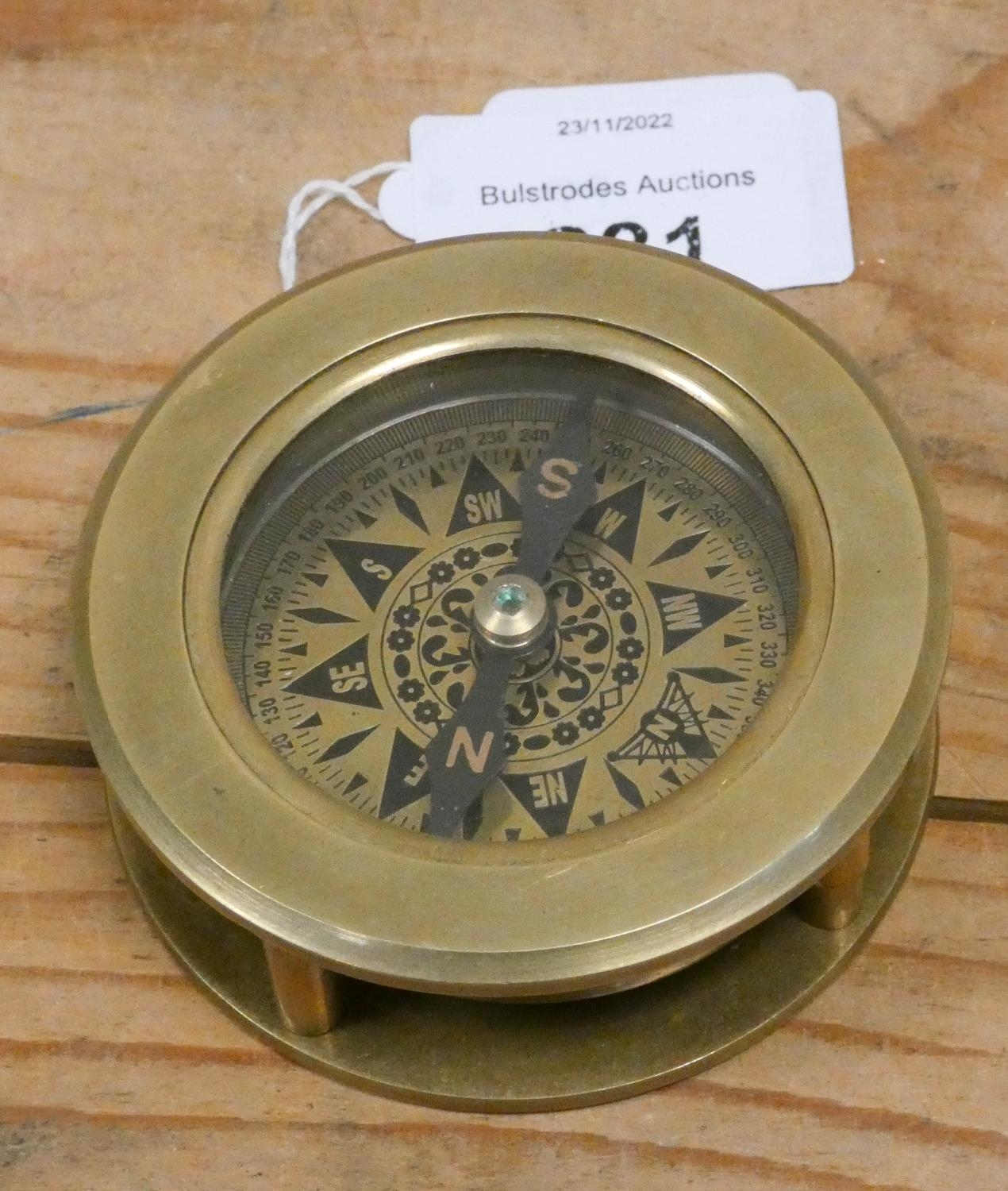 A brass compass with magnifying lens