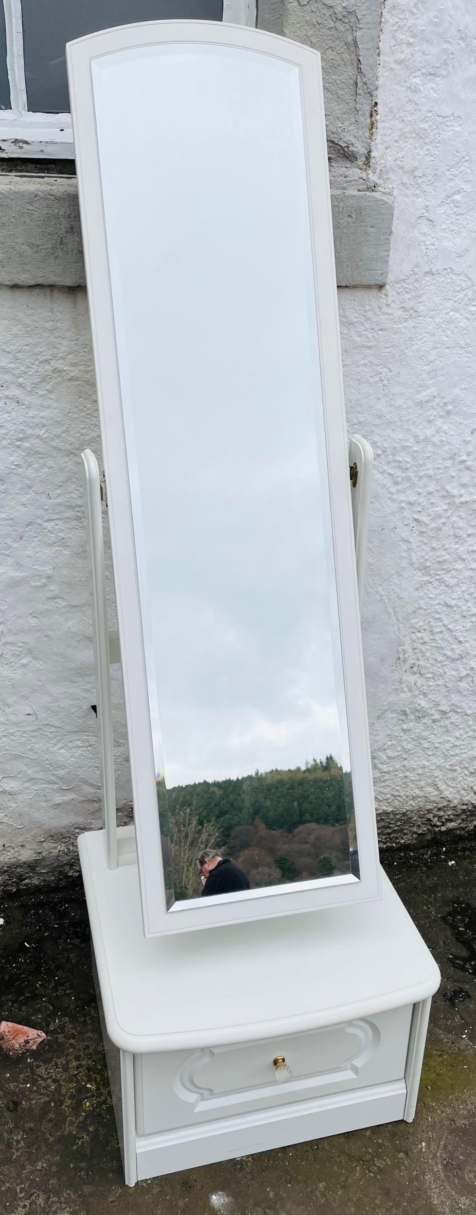 A modern bedroom white finish floor mirror with storage drawer - dimension height 162cm x width 48cm x 47cm depth approx