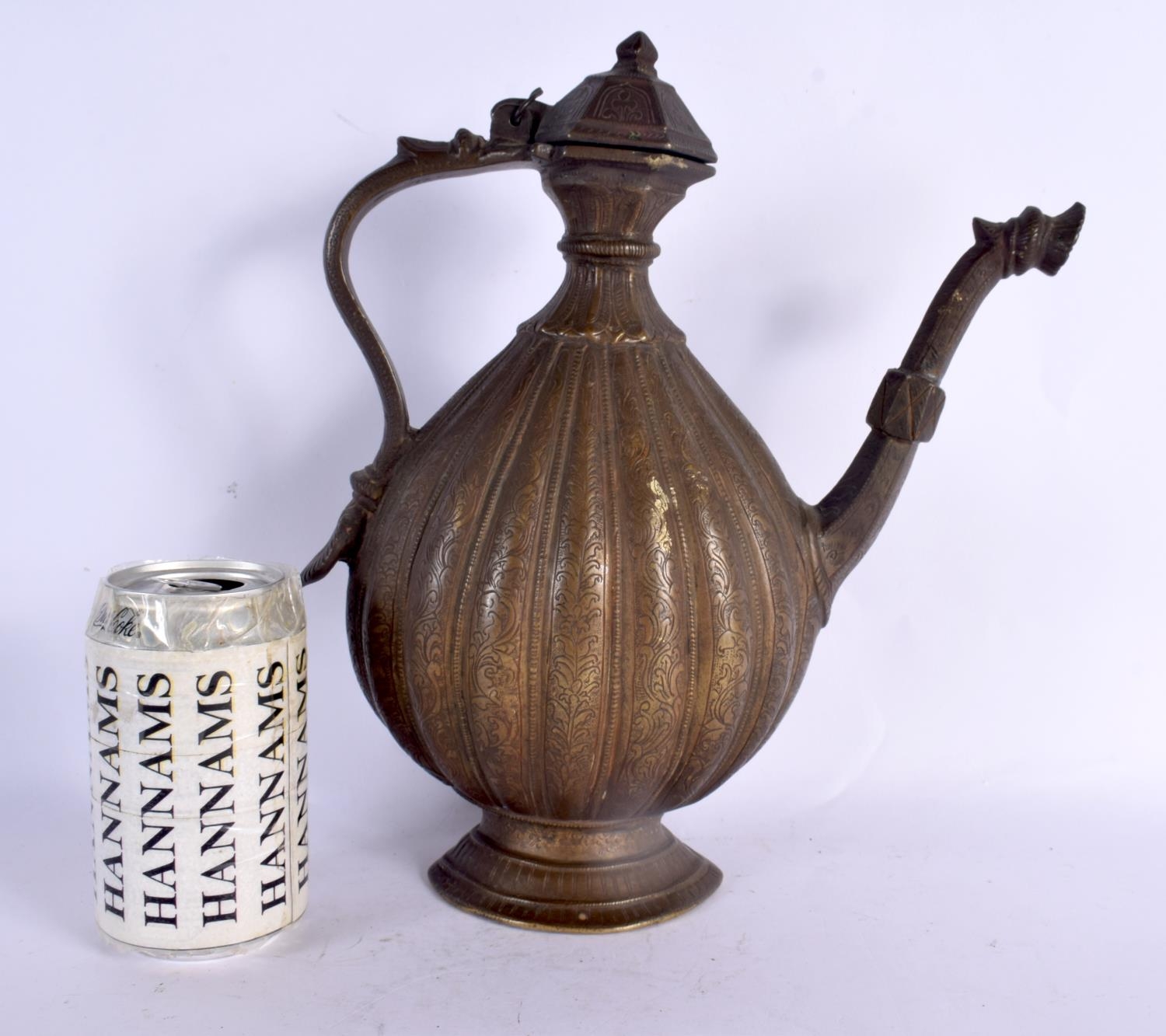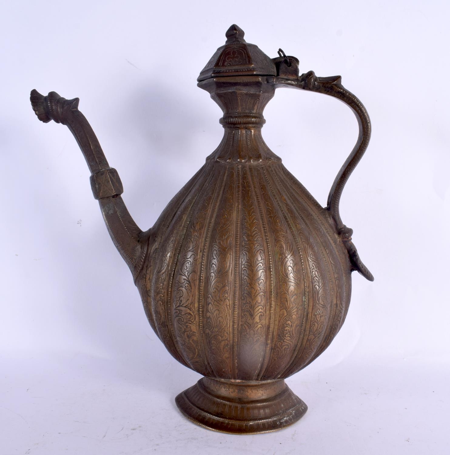 A LARGE 18TH CENTURY MIDDLE EASTERN OTTOMAN TYPE BRONZE EWER decorated all over with foliage and vines. 30 cm x 18 cm.