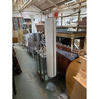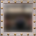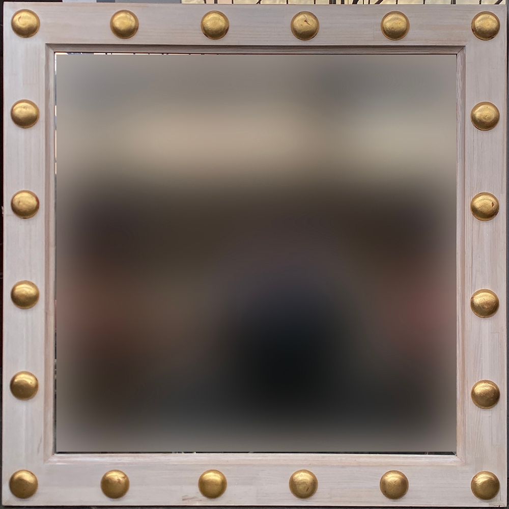 A large square mirror with bevelled glass, lined frame with gilt raised circles, 101x101cm