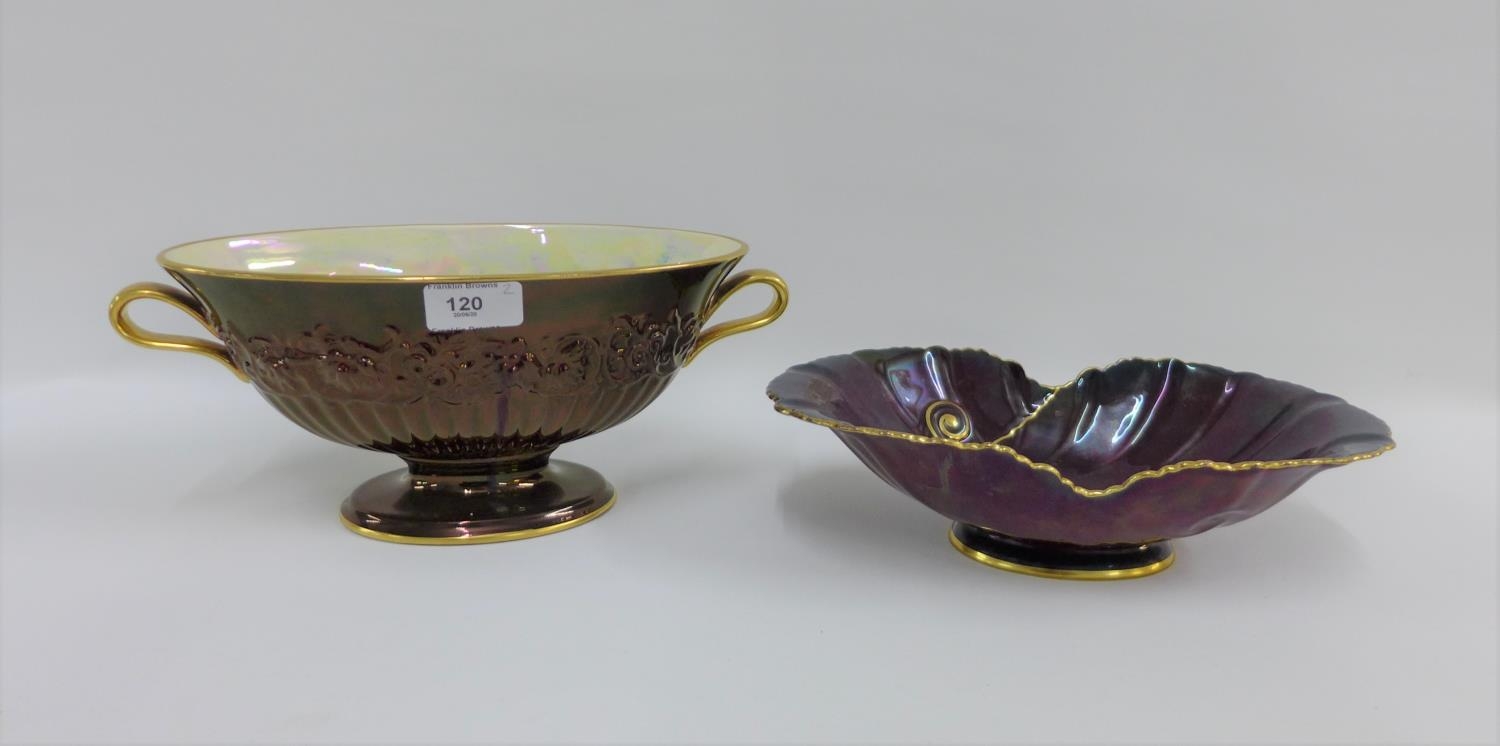 Carlton Ware Rouge Royale pedestal bowl and a scalloped edge dish (2)