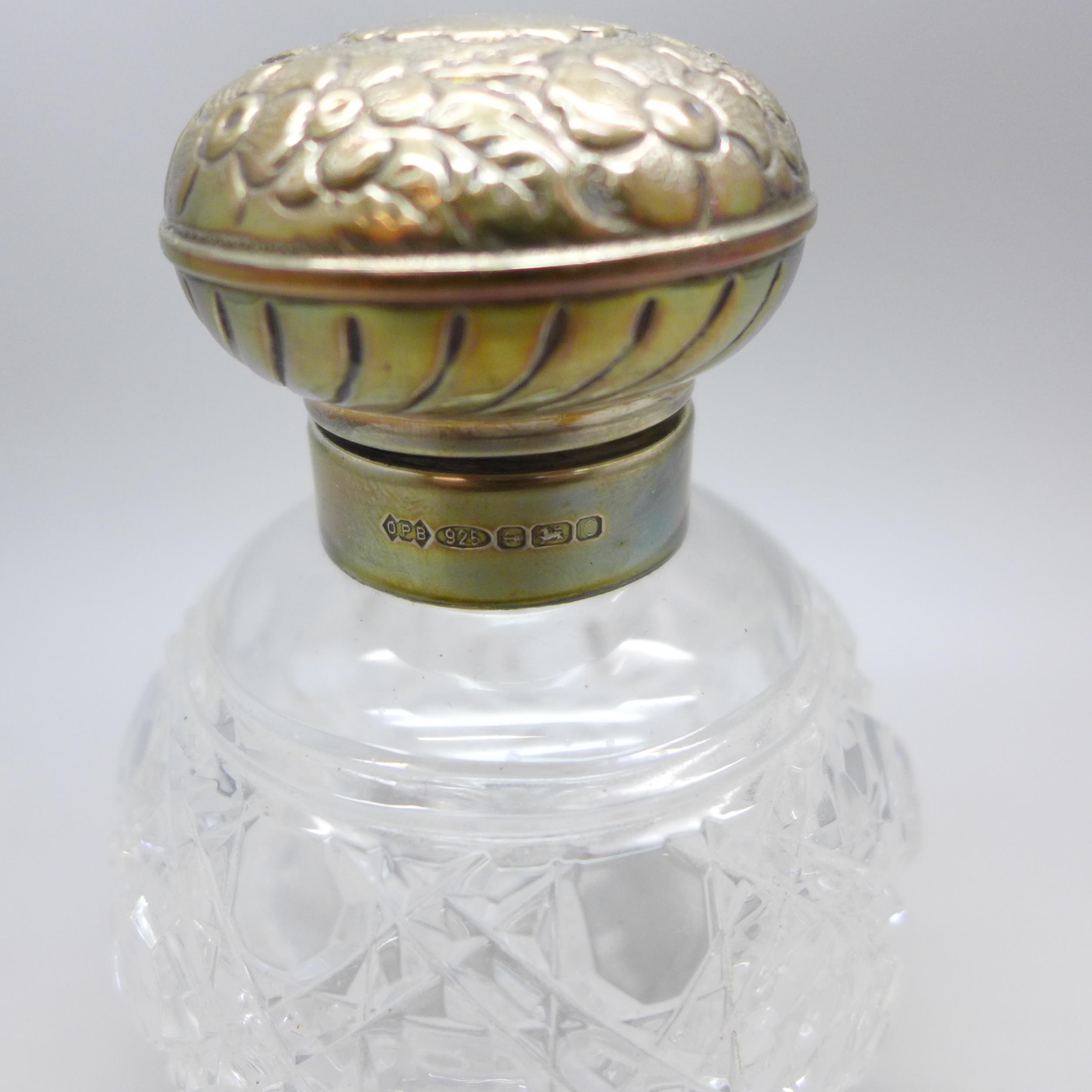 A silver topped scent bottle, with stopper, Birmingham, 2002, 11cm