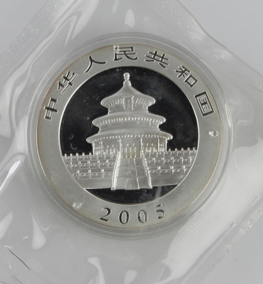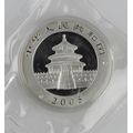 China 1oz .999 silver Panda 10 Yuan 2005 BU in capsule in original sealed cellophane packaging.