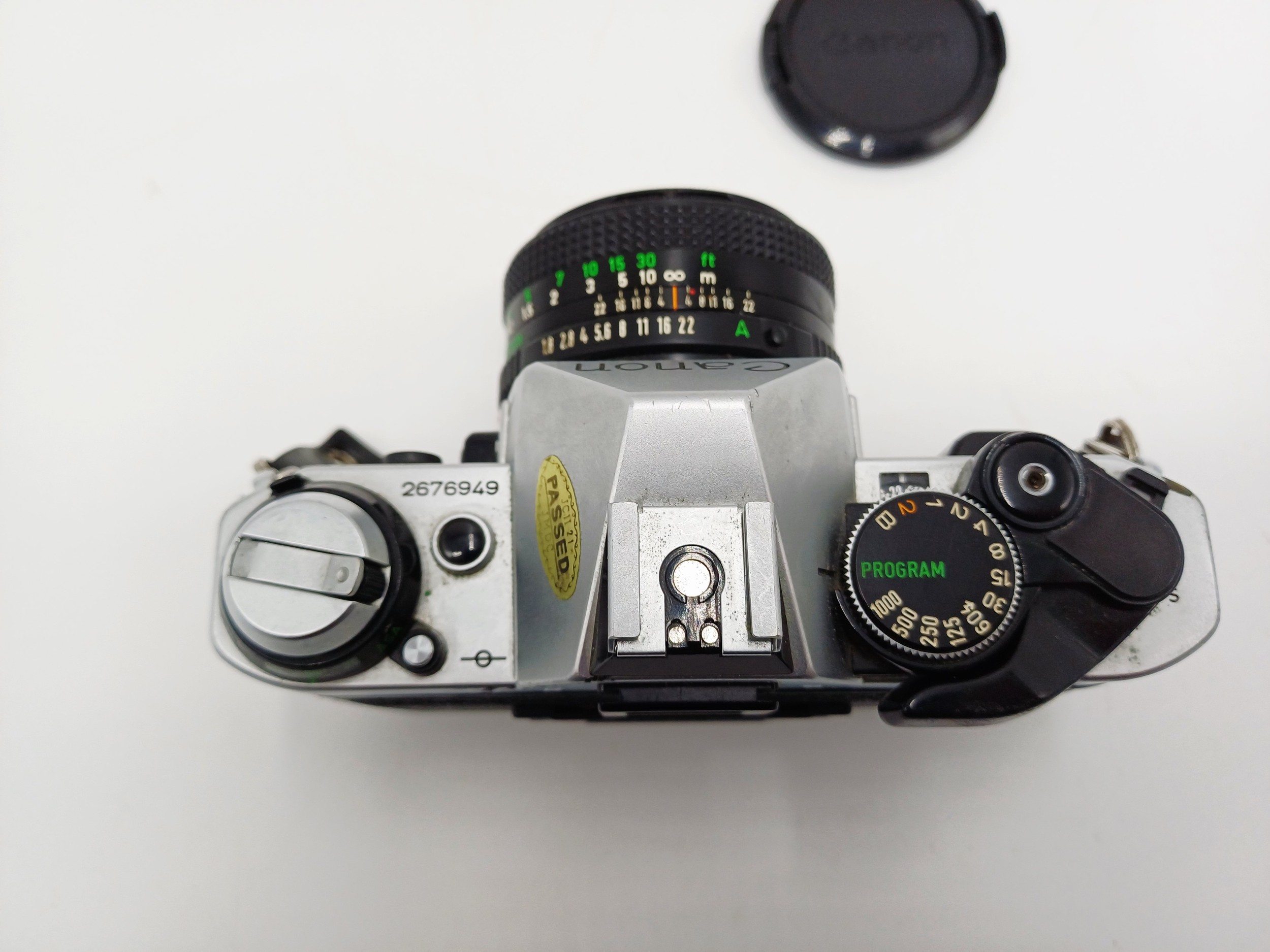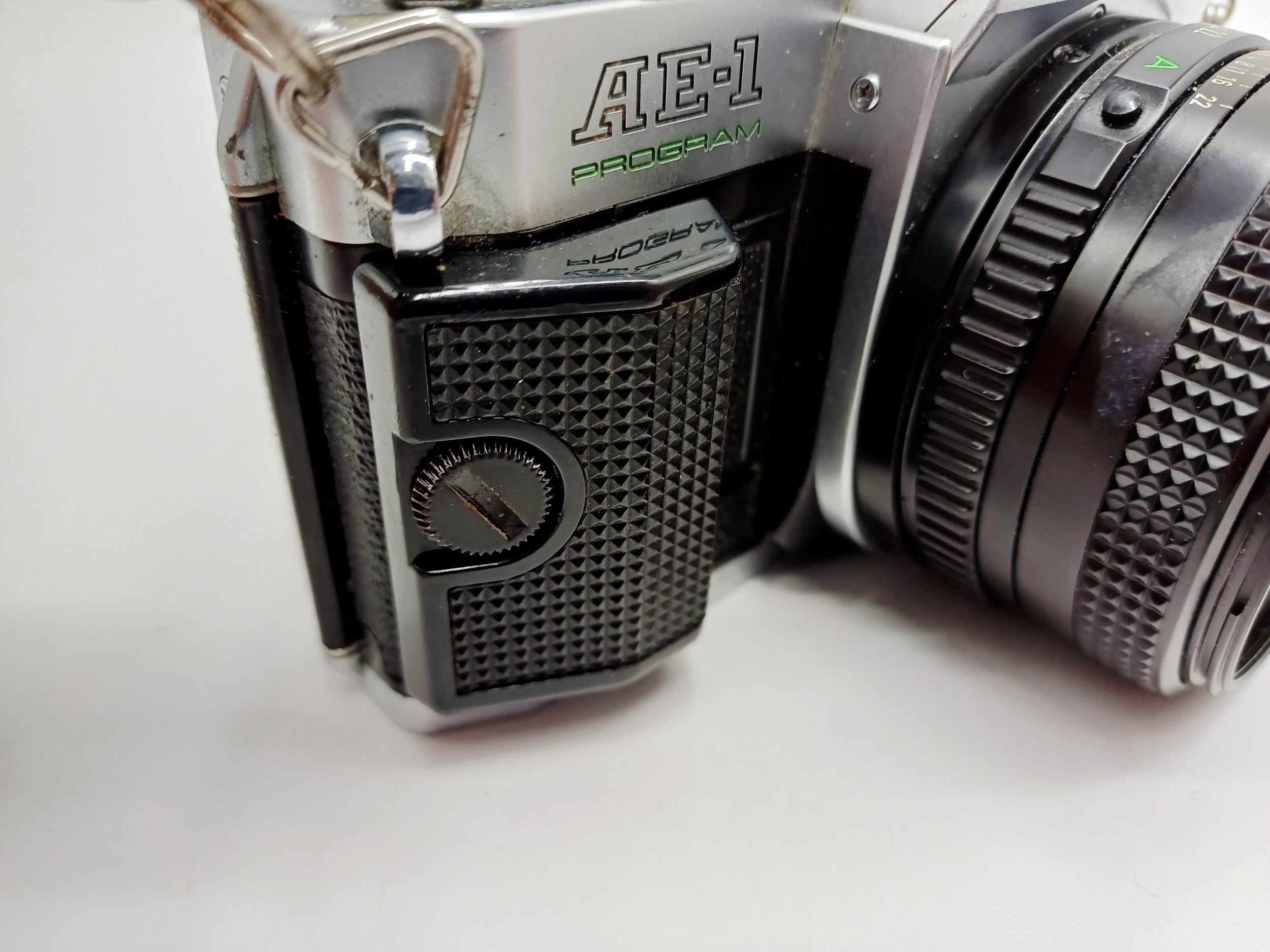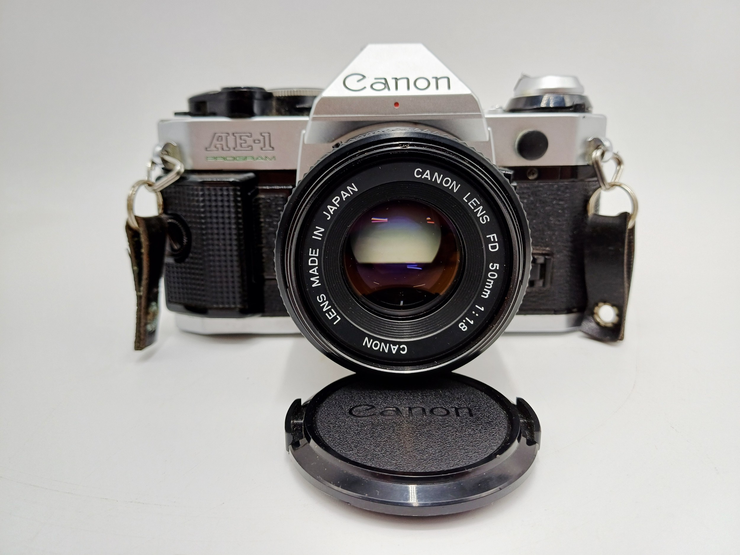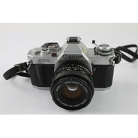 A Canon AE-1 Program 35mm SLR camera fitted with FD 1:1.8 50mm lens