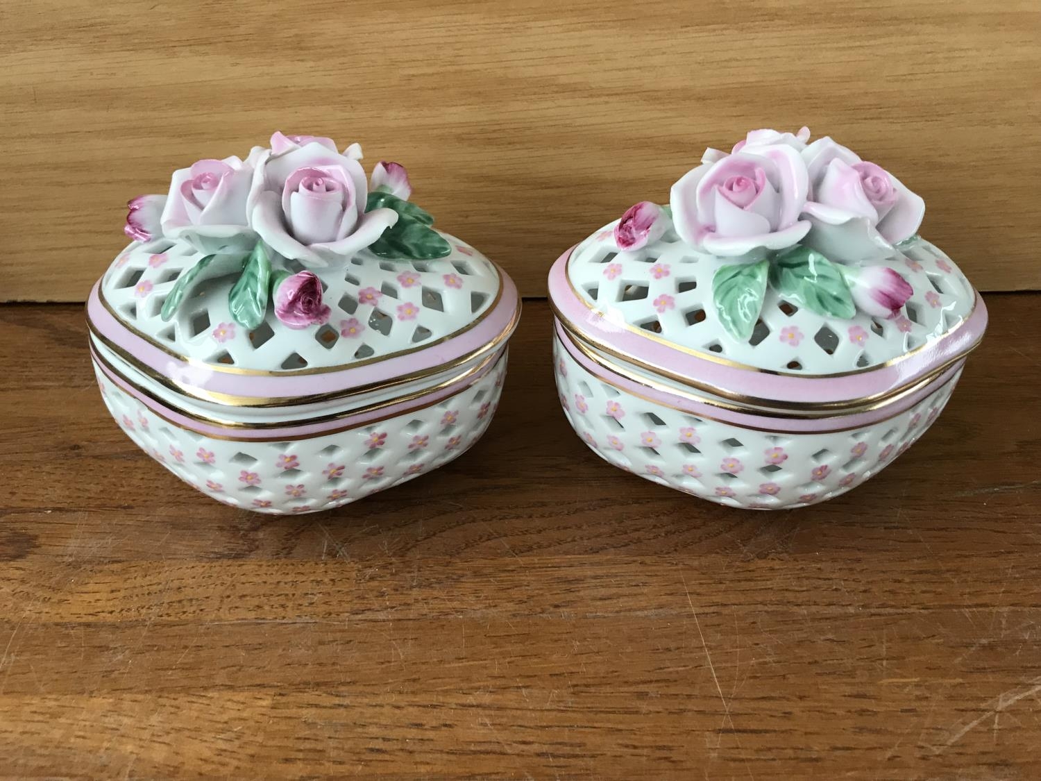 Pair of Past Times Finest Porcelain Trinket Boxes (Unused)