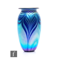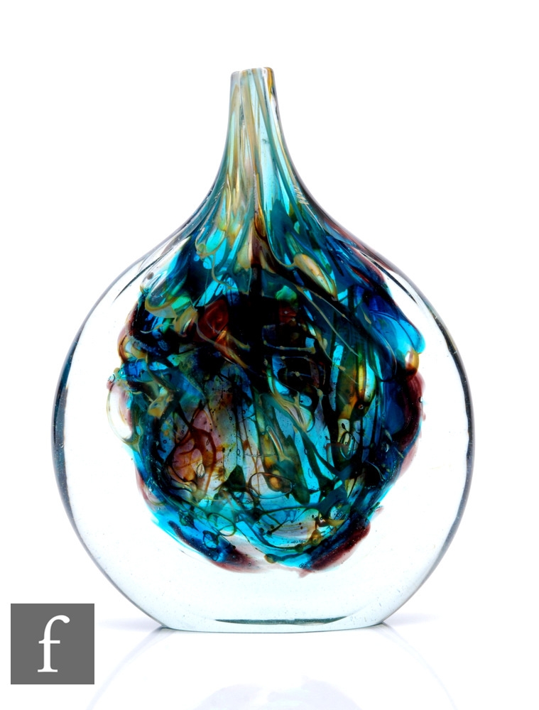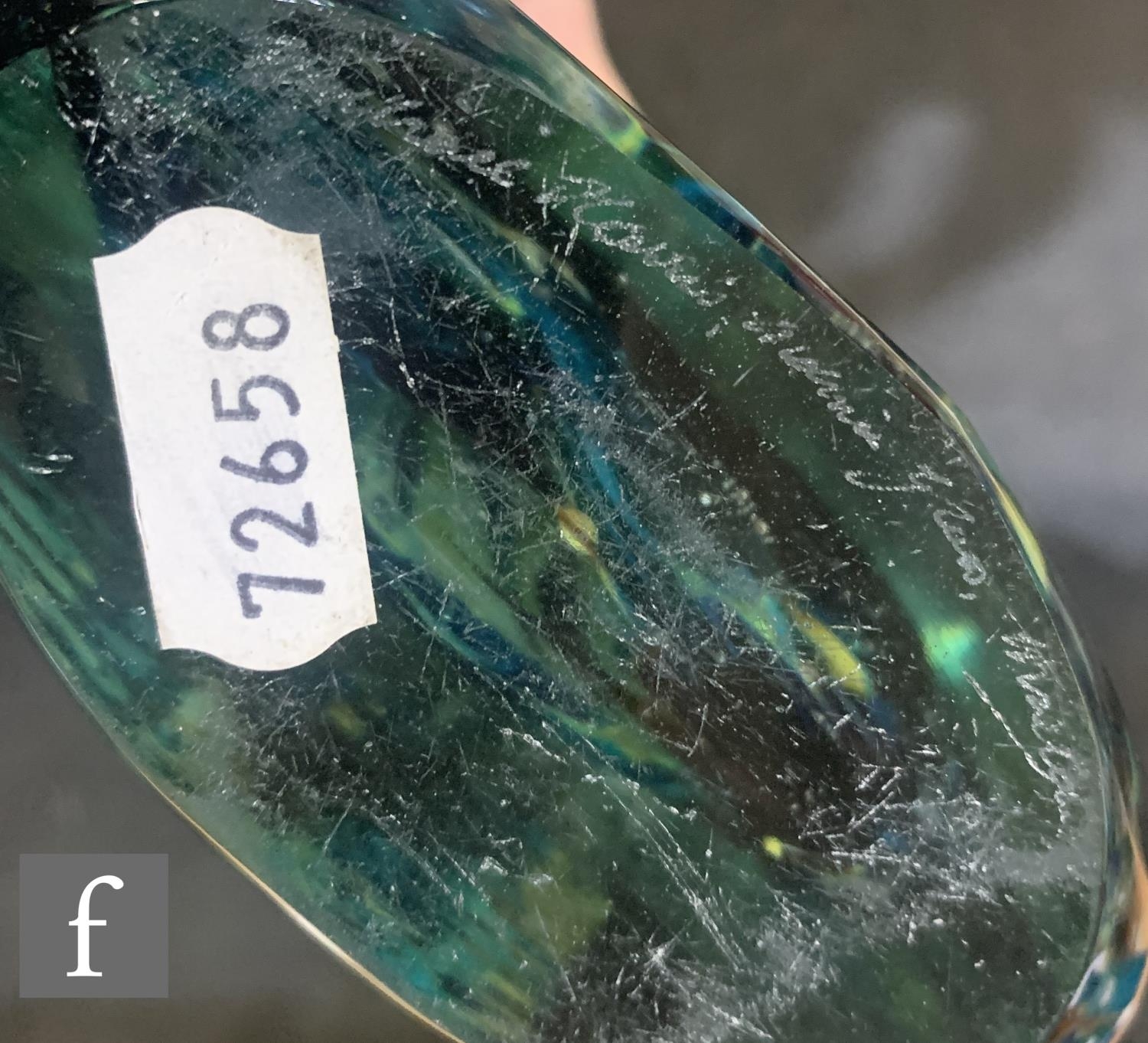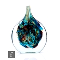 Michael Harris - Mdina - An Ice C fish vase of compressed ovoid form with slender drawn neck, cased in clear crystal over a tonal blue and chloride interior, engraved signature reading 'Michael Harris, Mdina Glass, Malta', height 21cm.