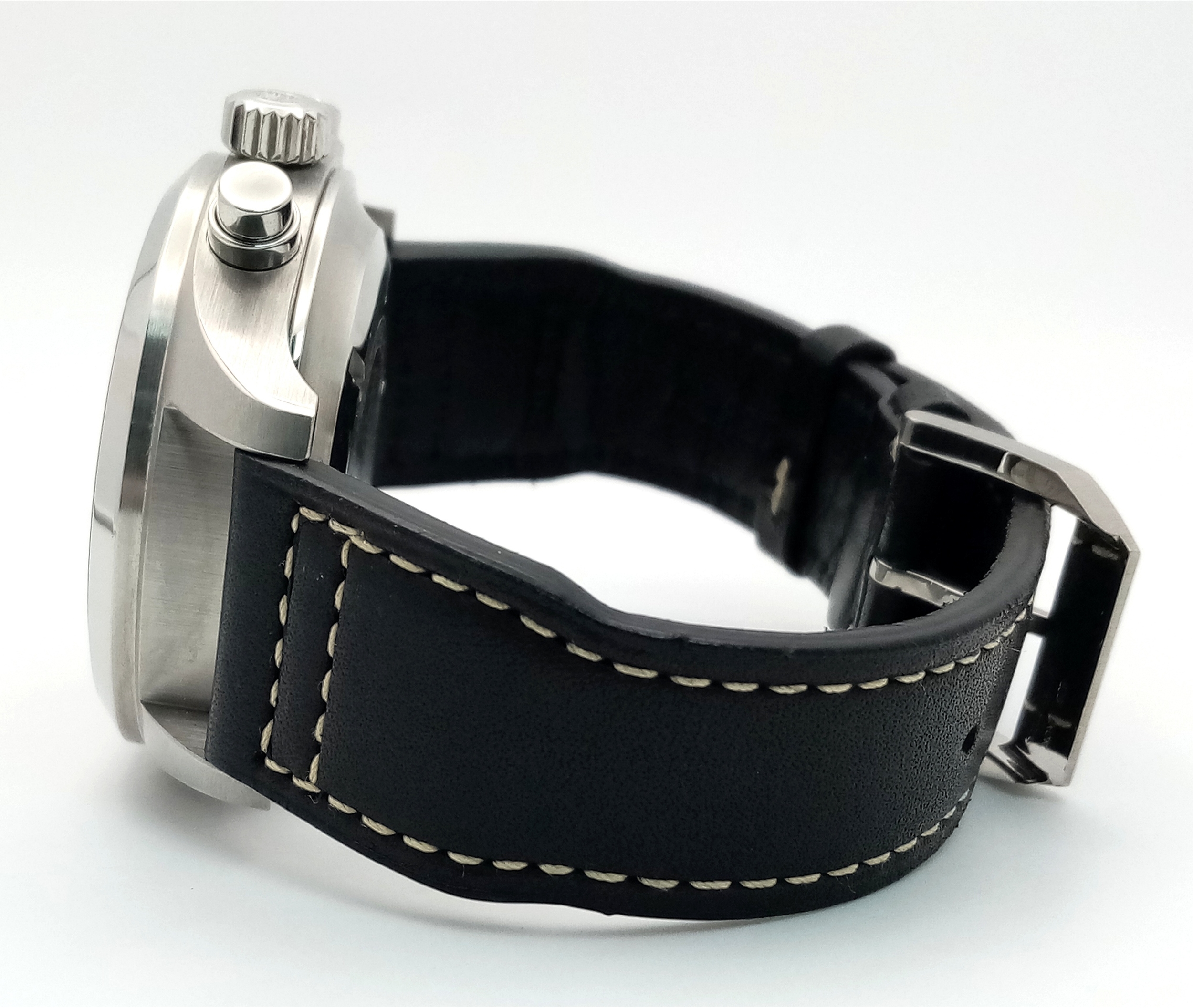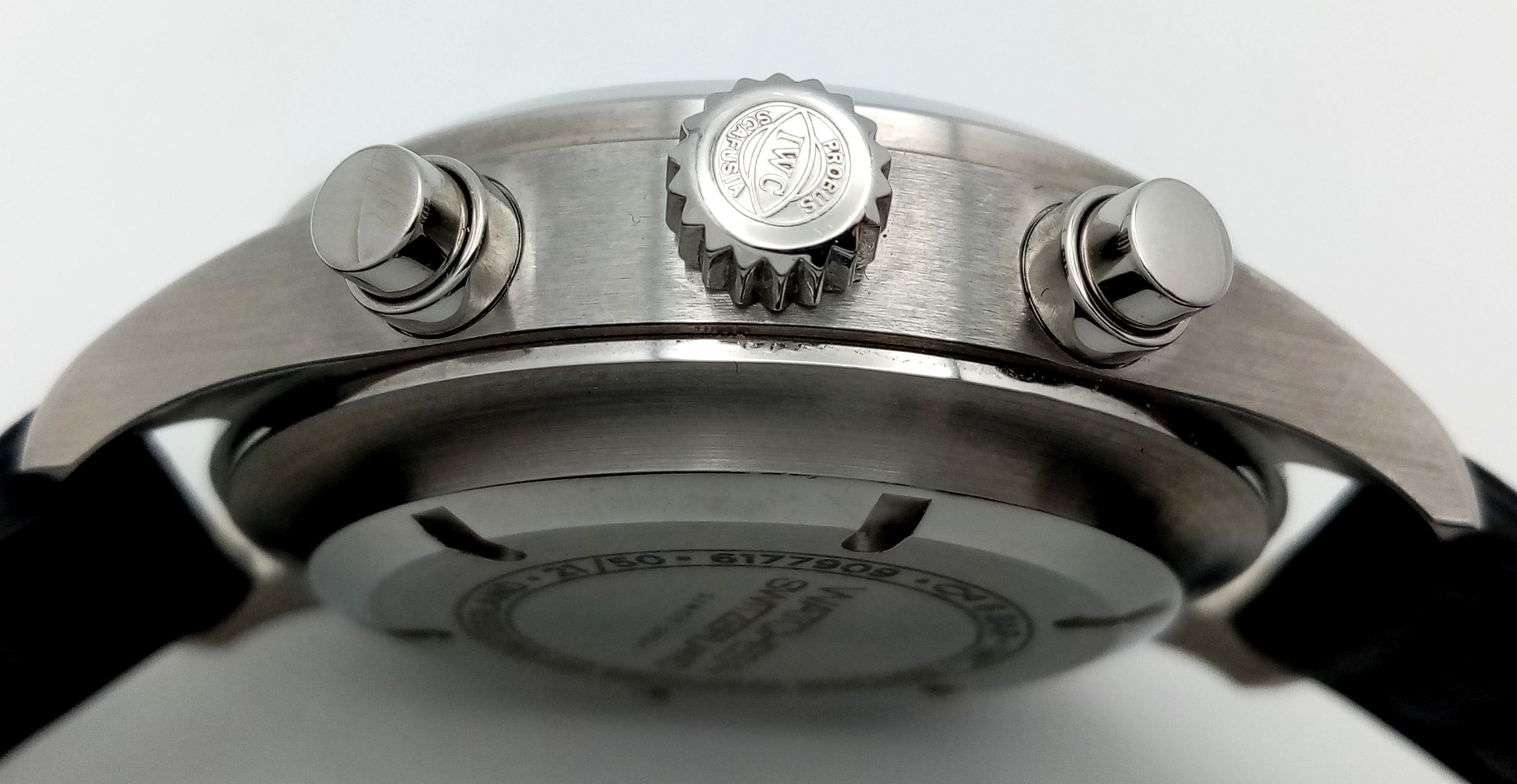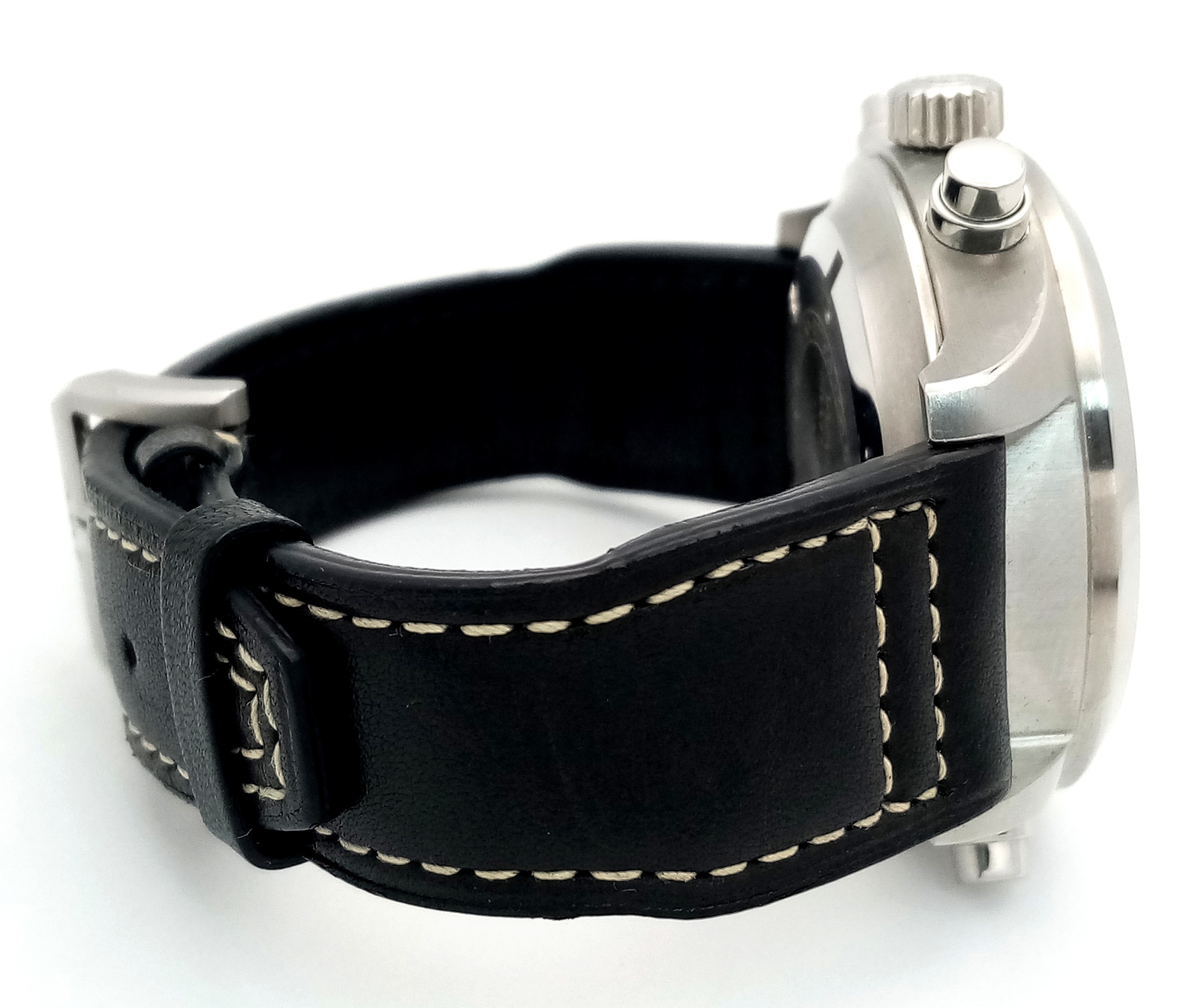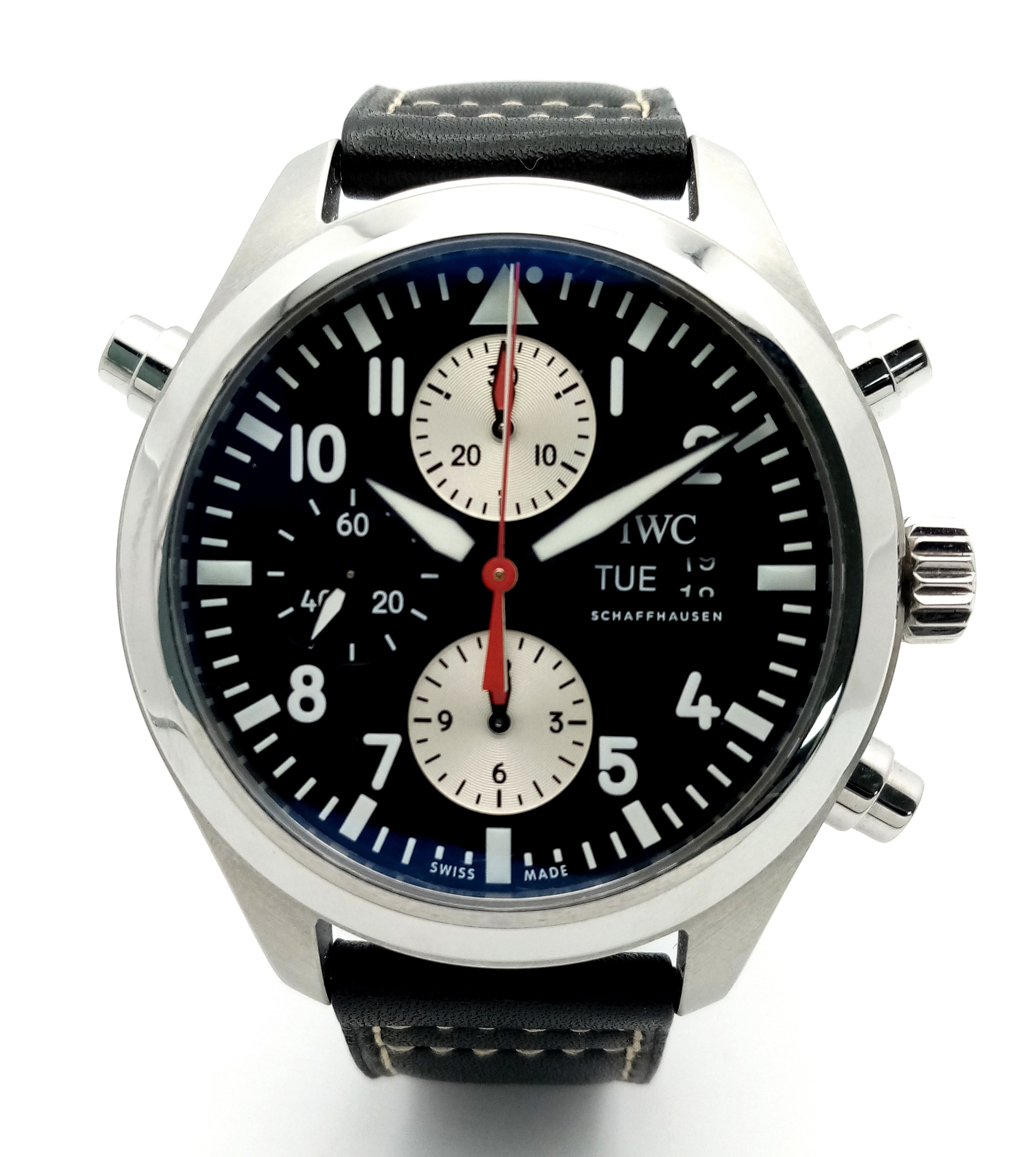 An IWC Pilot's Double Chronograph Automatic Gents Watch. Limited edition 21/50. Black leather strap. Stainless steel case - 43mm. Black dial with three sub dials. In good condition and working order. Comes with box and papers. Ref: 08492.