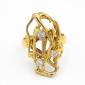 9ct gold diamond abstract freeform artisan made ring - nice chunky band (7.2g) size Q