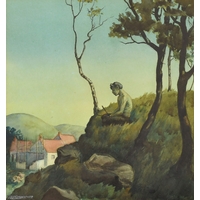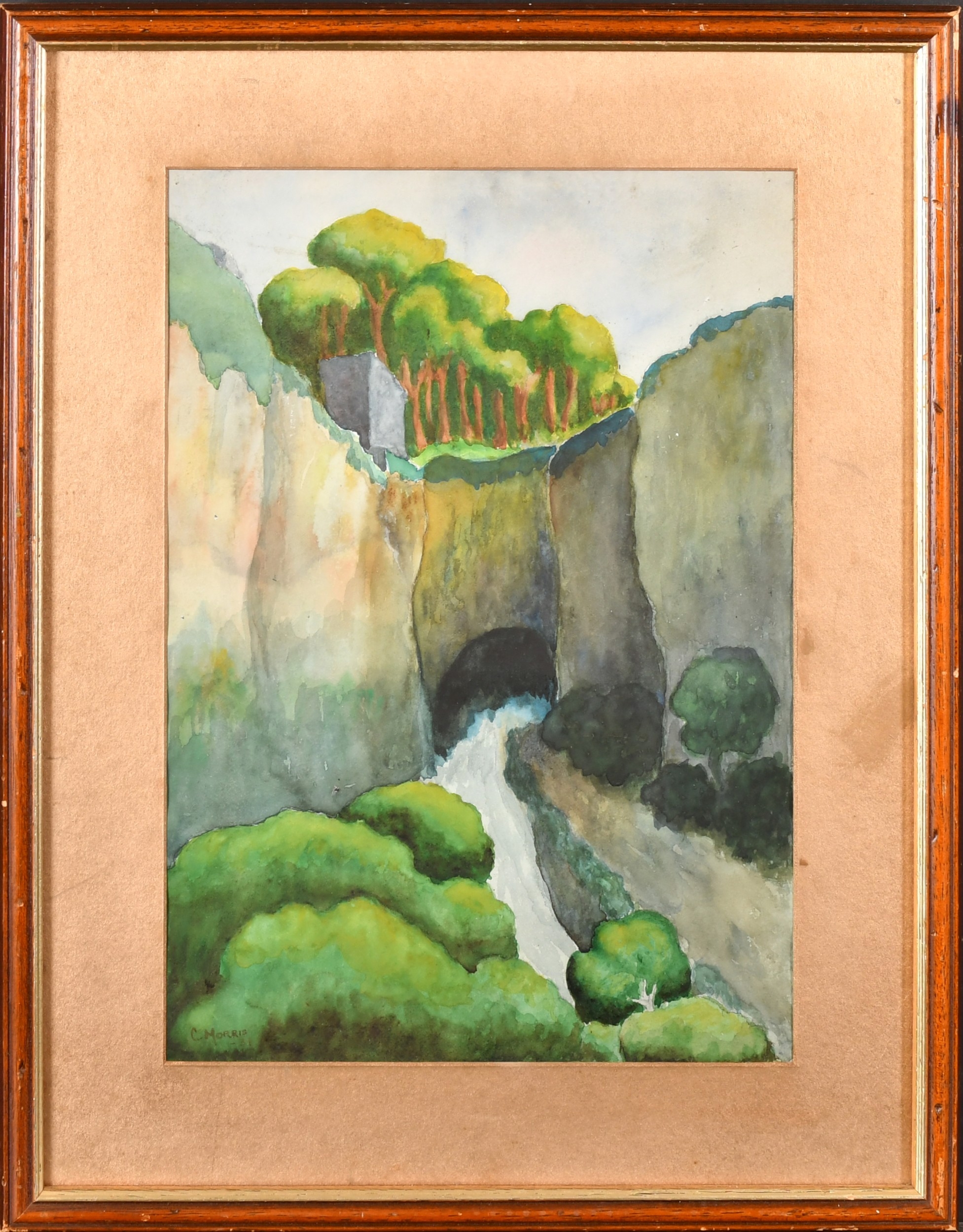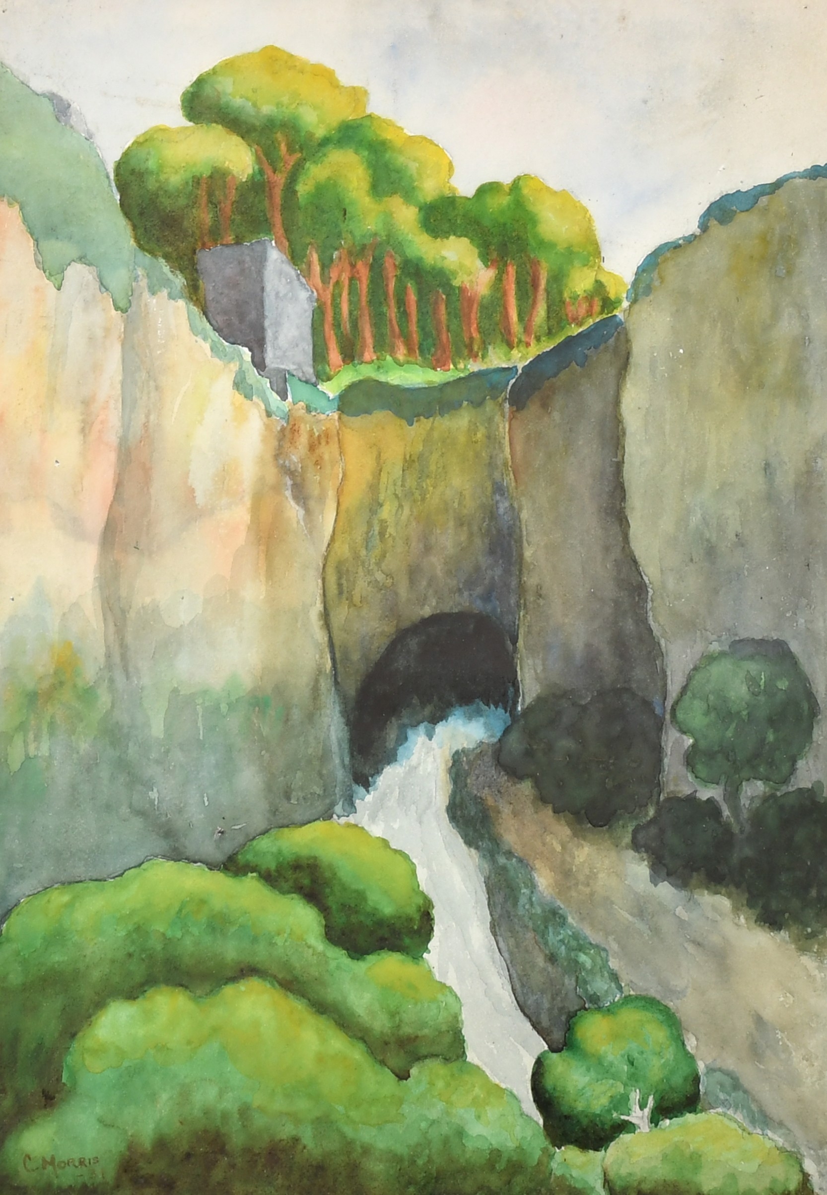 Cedric Morris (1889-1982) British. "River Mynach, Cardigan", Watercolour, Signed, and signed, inscribed and dated 1934 in pencil verso, 13.5" x 9.5" (34.3 x 24.2cm)