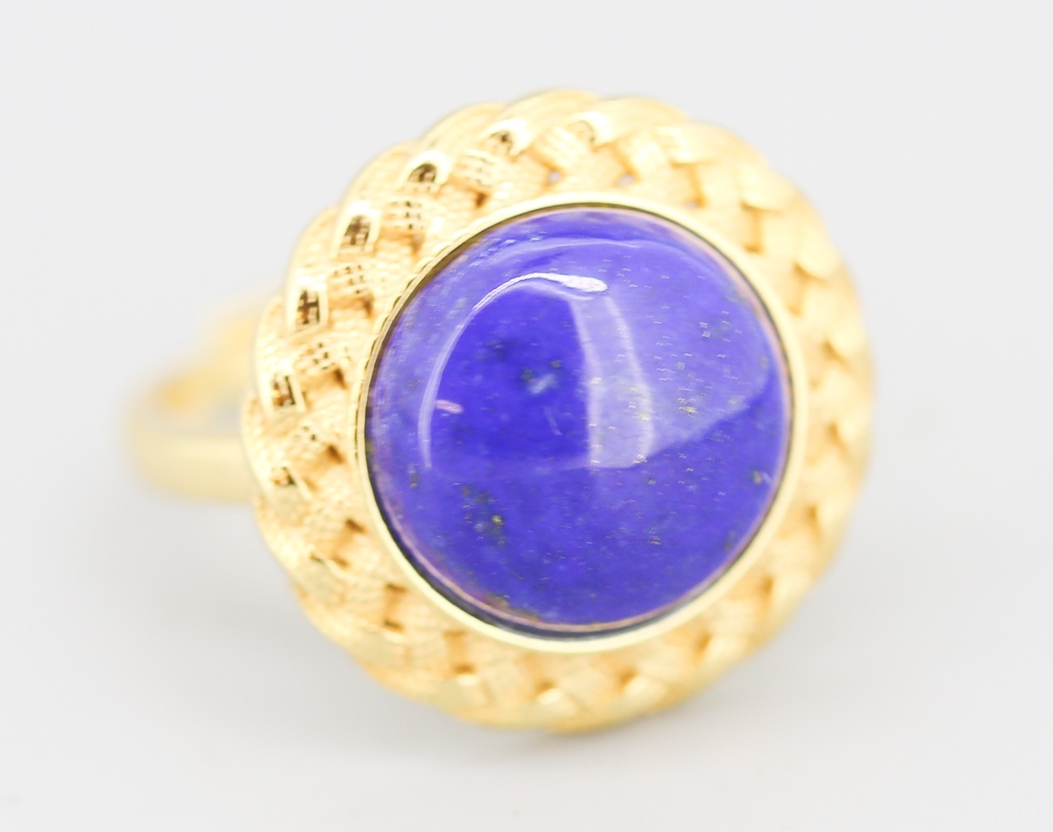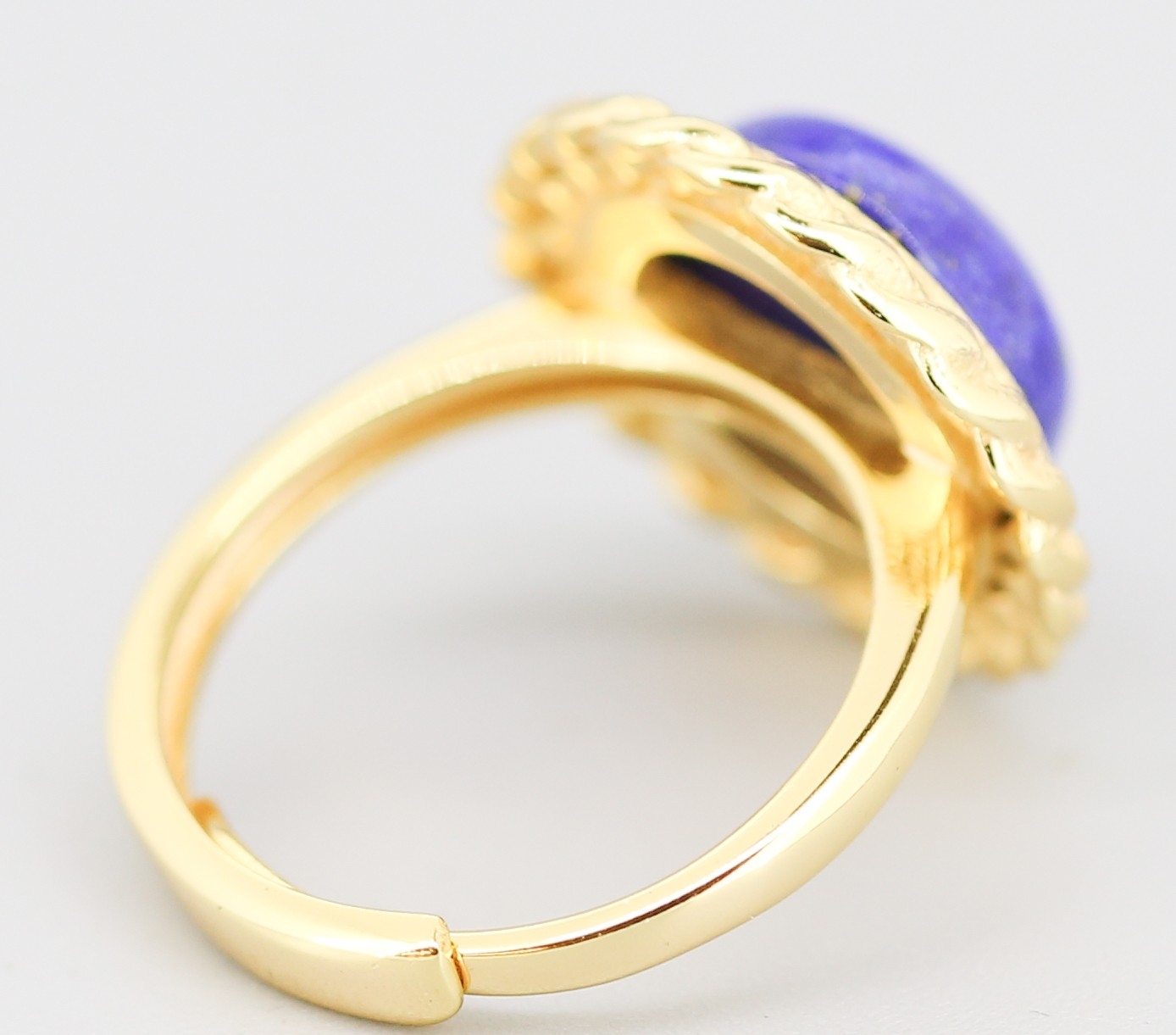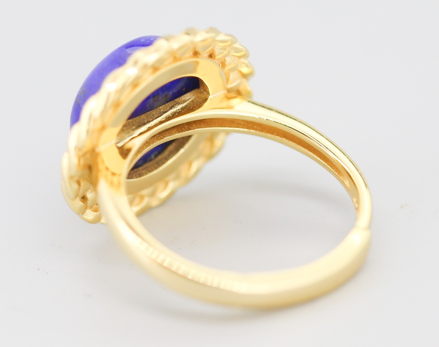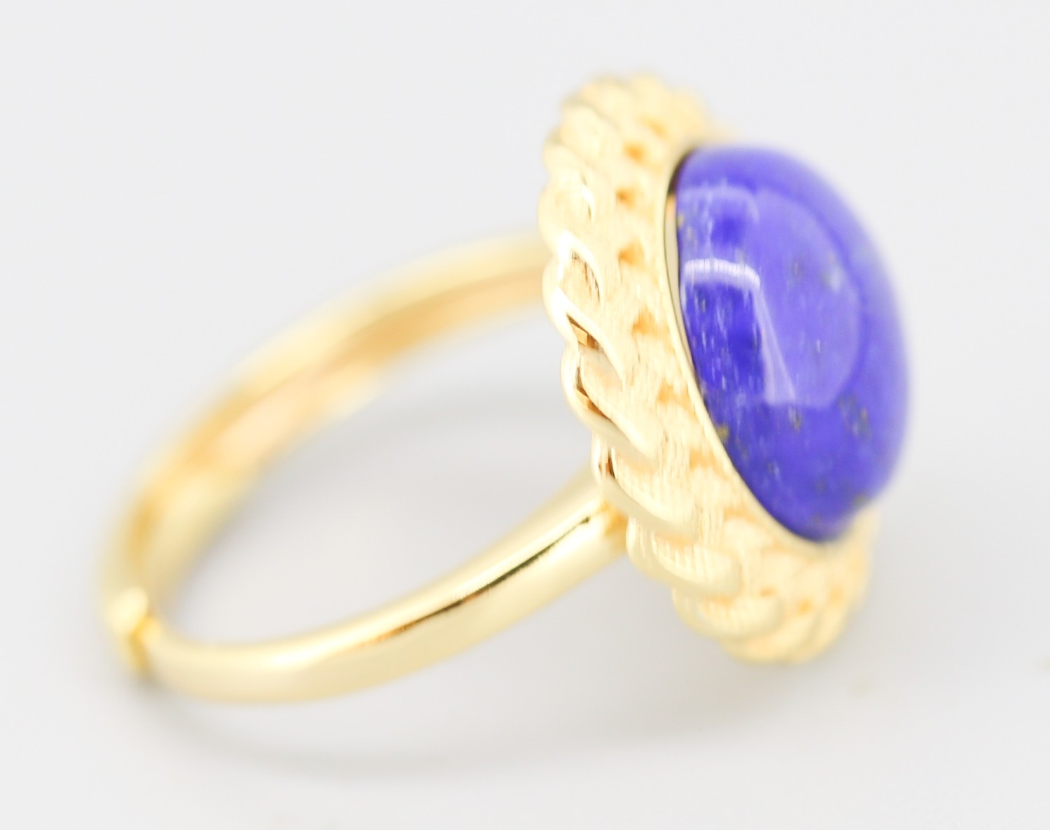 Attractively Detailed Lapis Lazuli Set Single Stone Ring Mounted in Silver Gilt Ring Size O and Adjustable