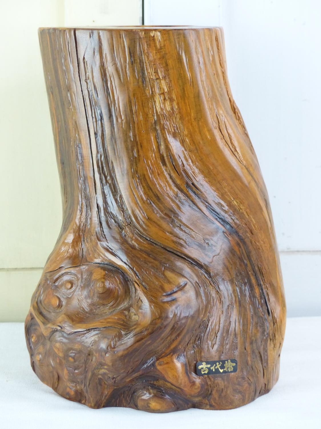 An unusual Japanese 'Ancient Art' maple vase with copper liner measuring 25cm tall.