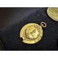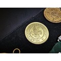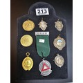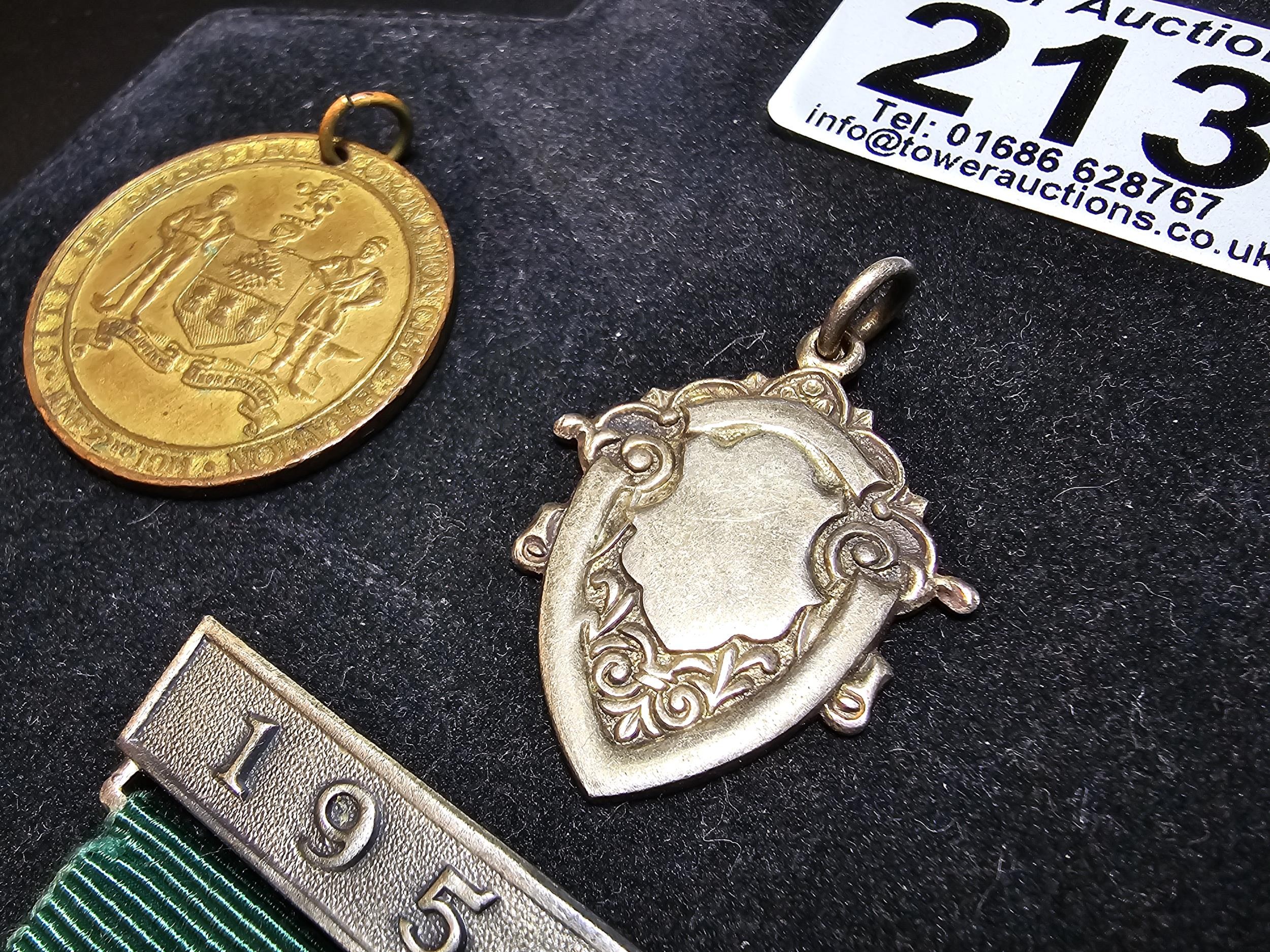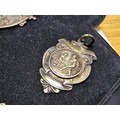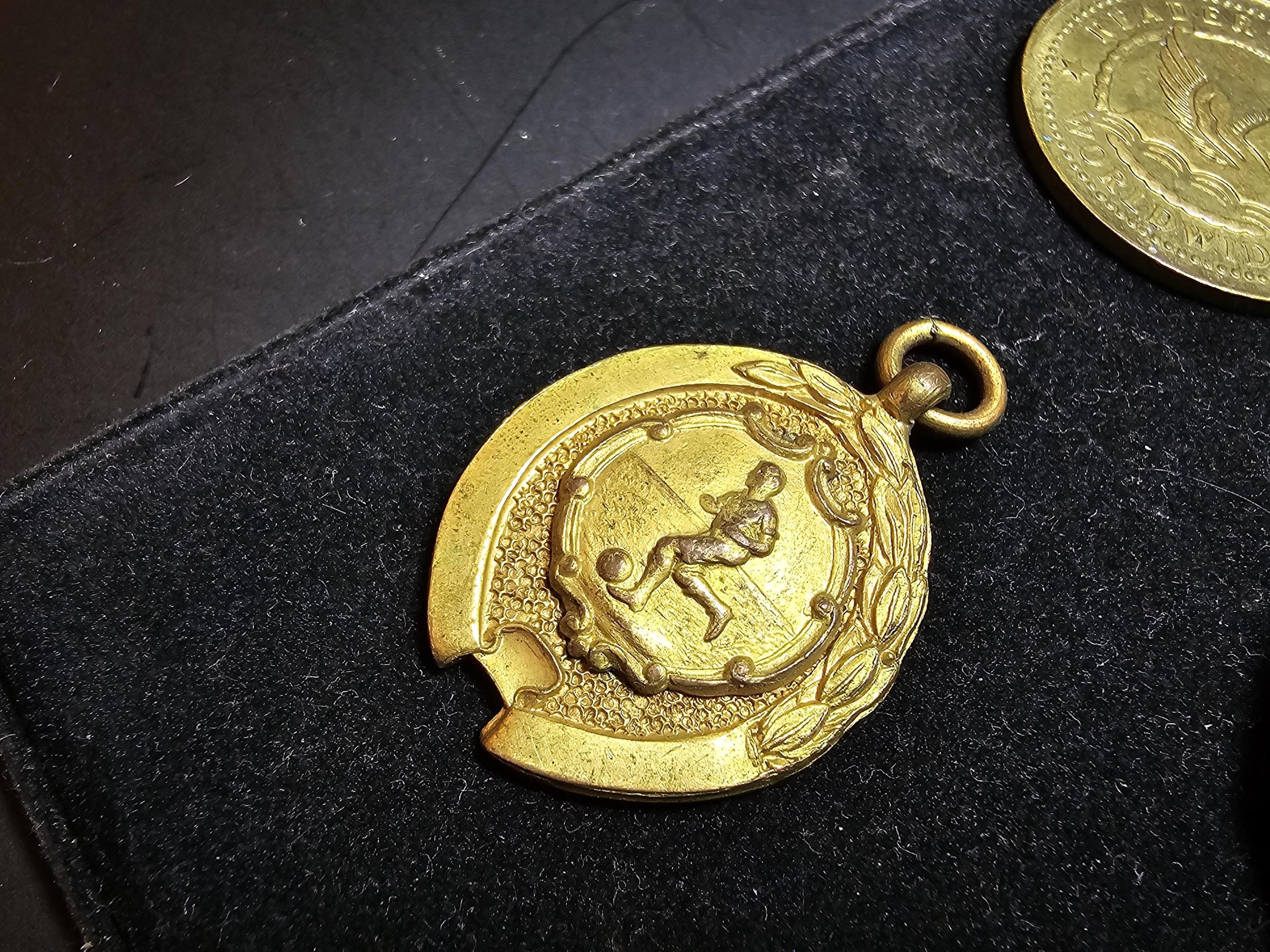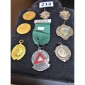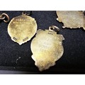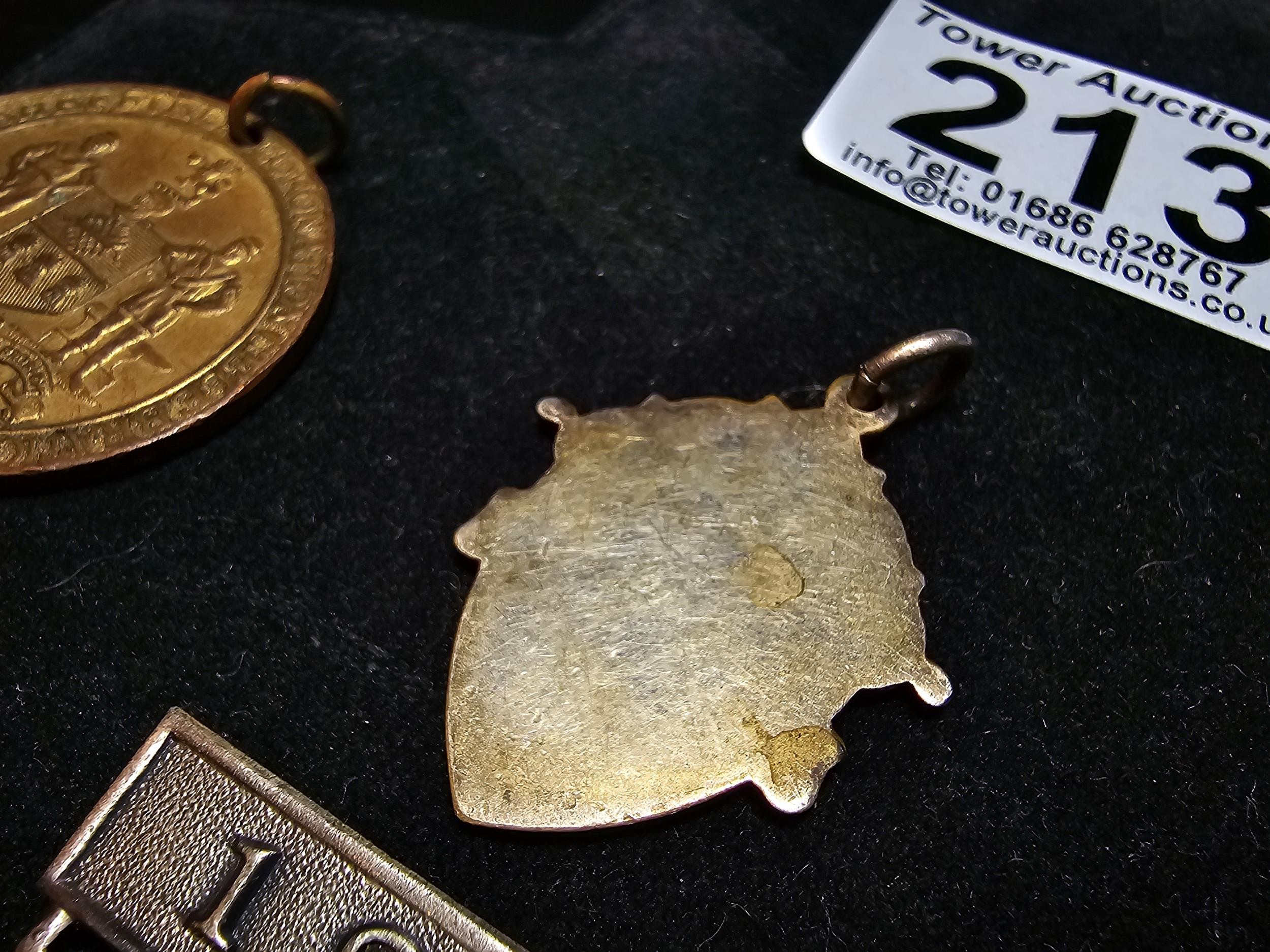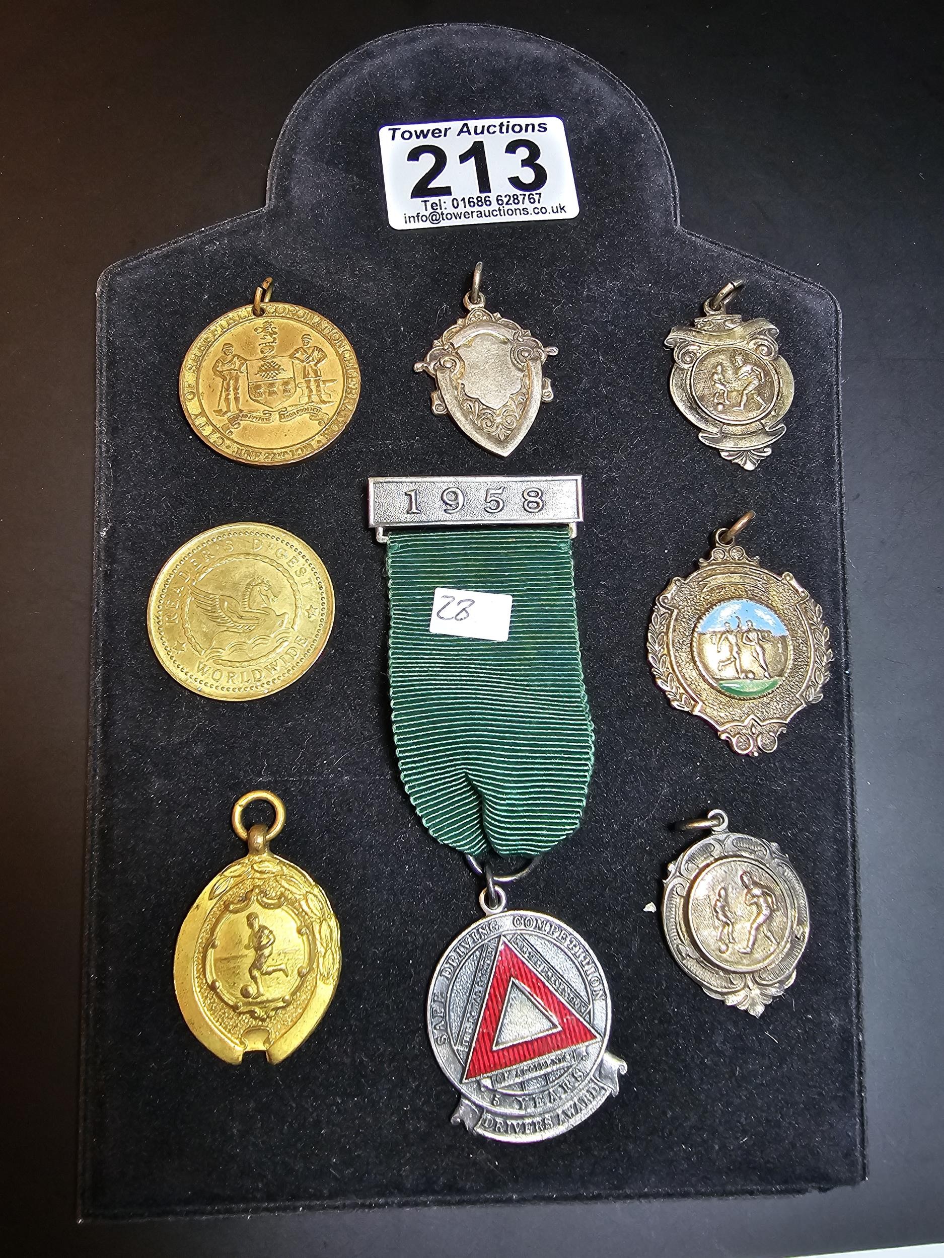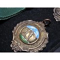 A collection of 8x various medals to include 4 Sterling Silver medals, 3 of which are football related and marked for Oswestry. Also includes a blank shield medal. Display board is not included.