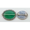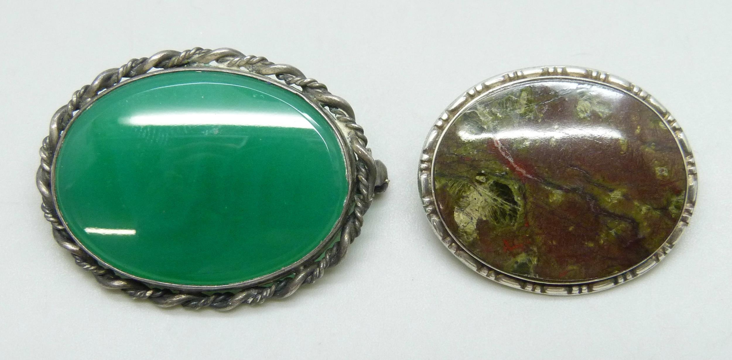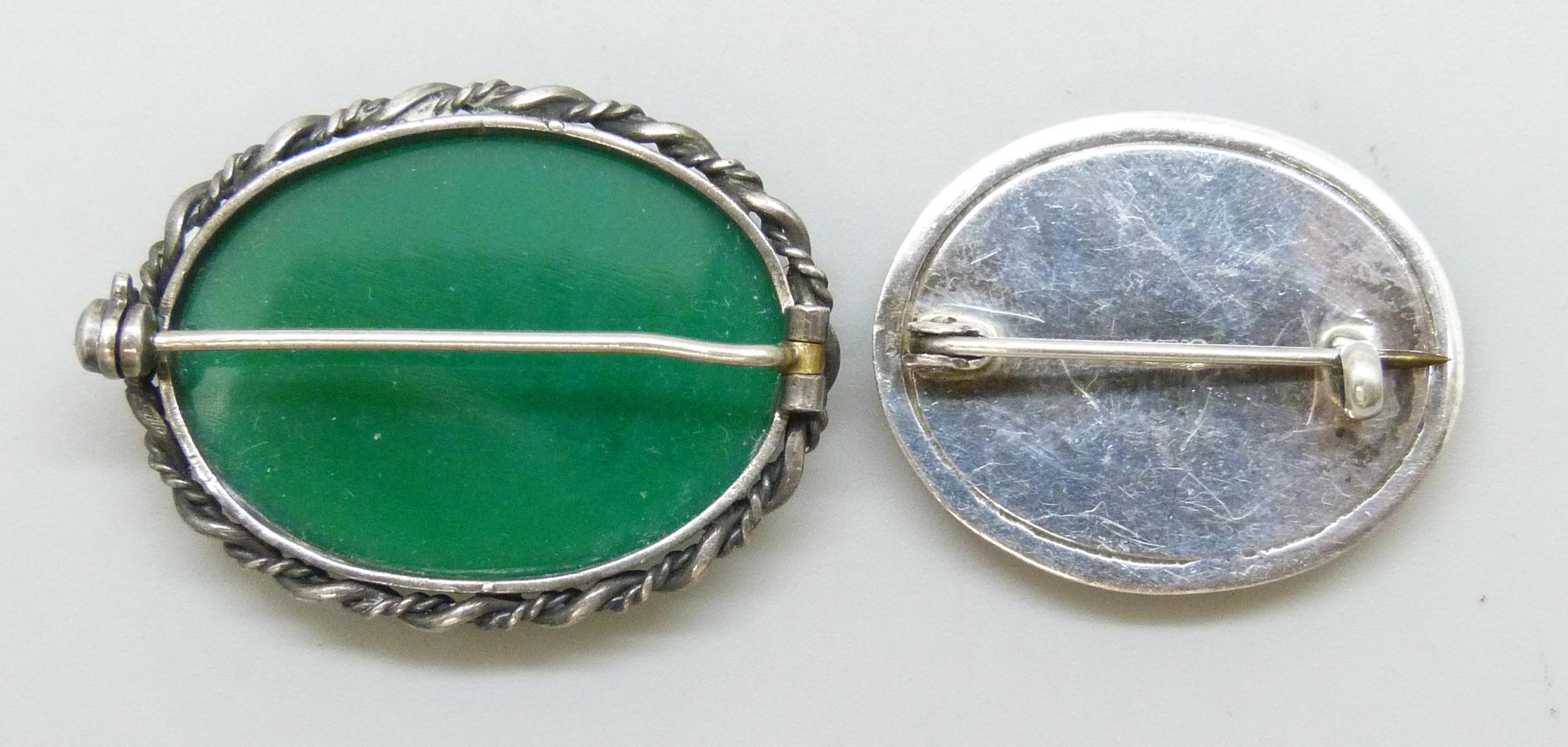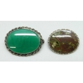 Two silver brooches including one set with chrysoprase, 3.4cm