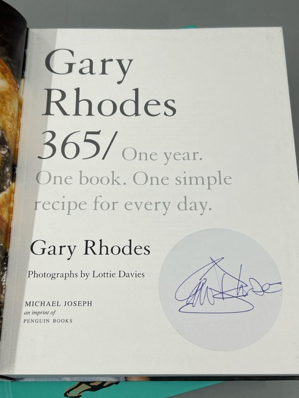 Two hardback cookbooks including Gary Rhodes 365, signed edition and Fortnum & Mason The Cook Book by Tom Parker Bowles / AN11