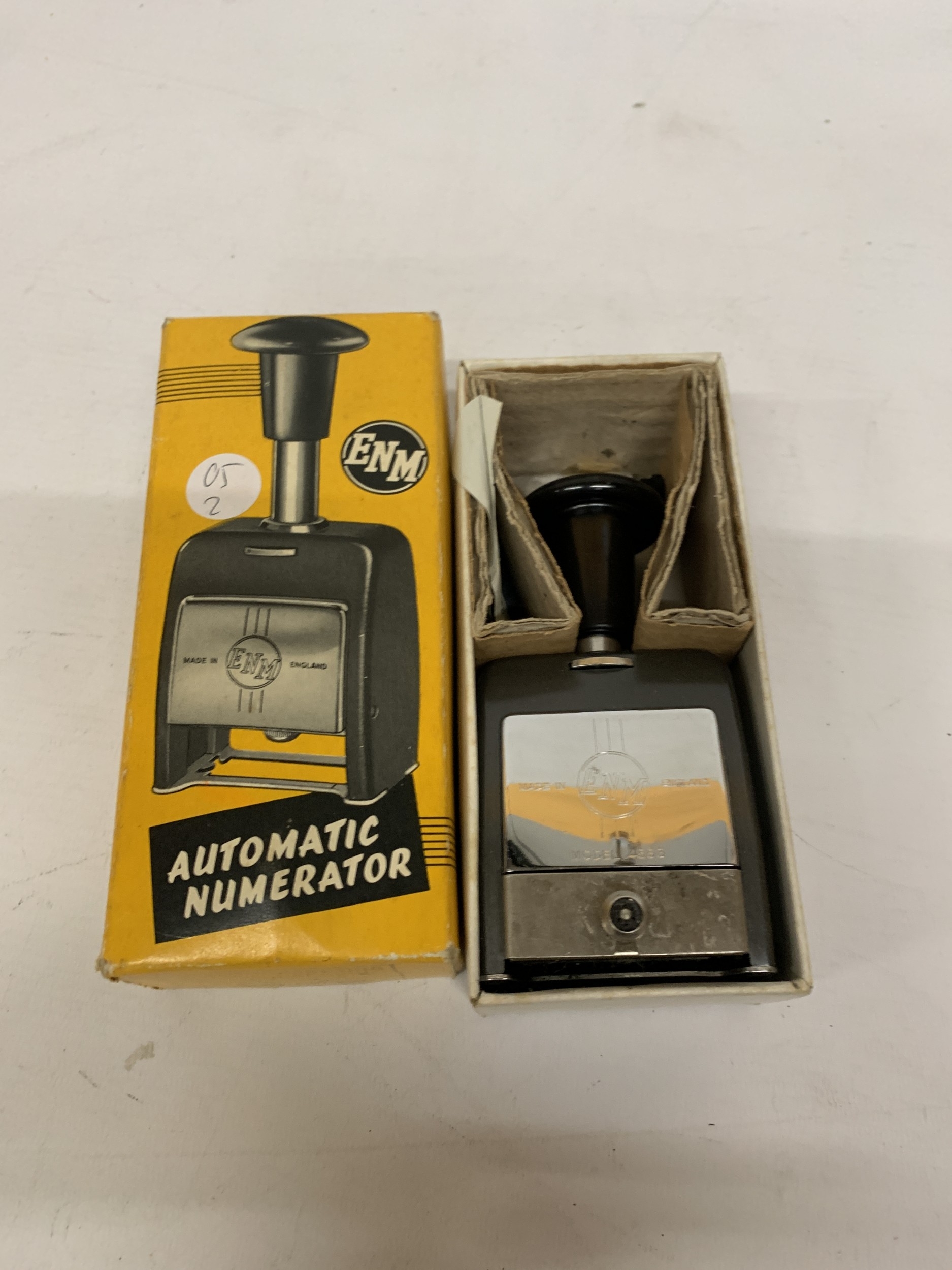 AN ENM AUTOMATIC NUMERATOR IN ORIGINAL BOX WITH INK SACHET